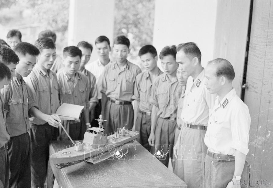 Các chiến sĩ phân đội 2 Hải quân không ngừng nâng cao trình độ kỹ thuật, luôn luôn cảnh giác bảo vệ Tổ quốc (1960). Ảnh: Đoàn Tý - TTXVN