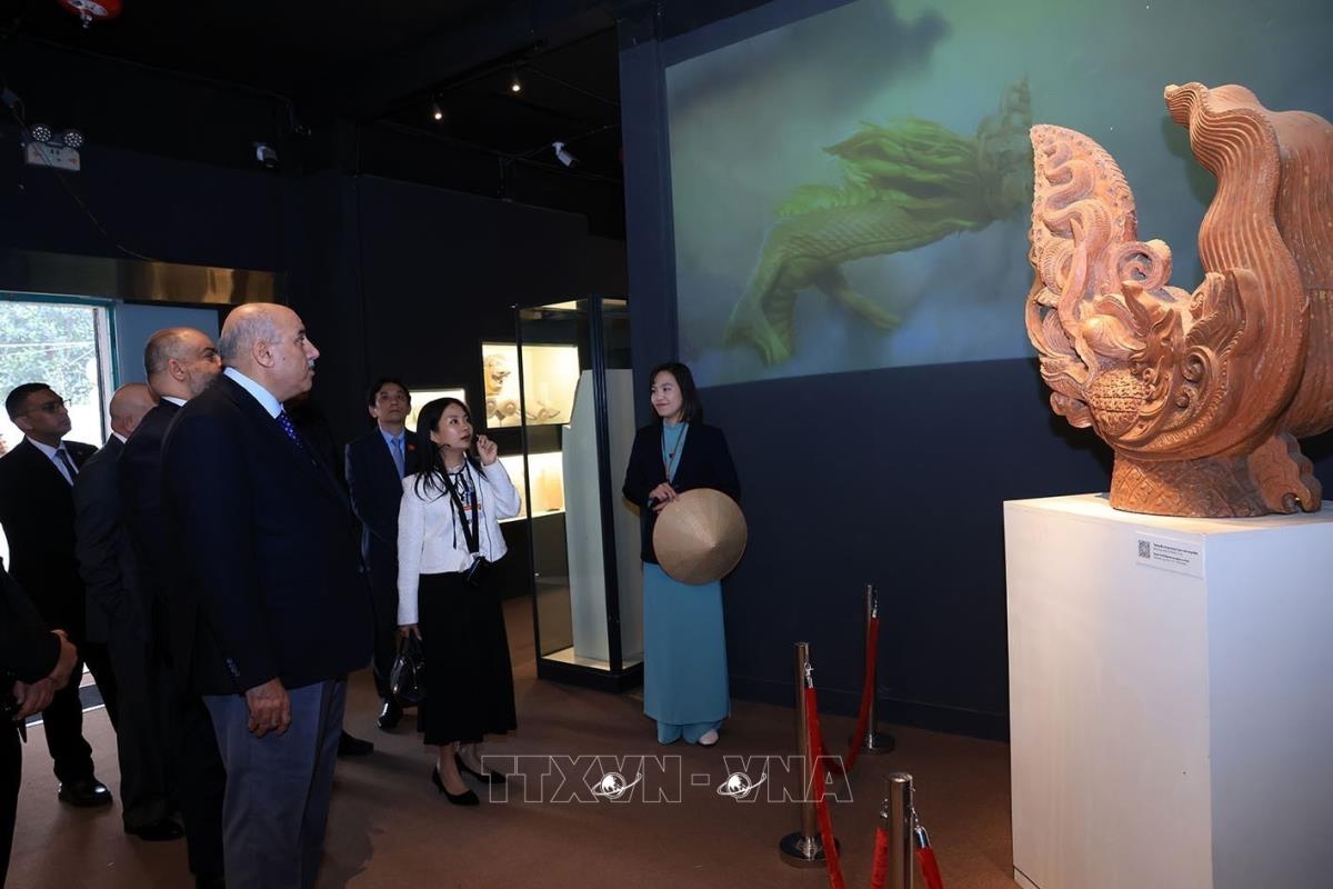 Tại đây, đại diện Trung tâm bảo tồn Di sản Thăng Long - Hà Nội giới thiệu với Chủ tịch Hạ viện Jordan cùng Đoàn về lịch sử hàng nghìn năm của dân tộc Việt Nam thông qua những hiện vật được bảo tồn, gìn giữ tại khu di sản Khu trung tâm Hoàng Thành, nơi mang đậm dấu ấn lịch sử của Thủ đô nghìn năm văn hiến. Những công trình kiến trúc từ xa xưa; những dấu tích kiến trúc và những hiện vật khảo cổ tại đây là niềm tự hào vô giá của Thăng Long - Hà Nội nói riêng, của nước Việt Nam nói chung.
