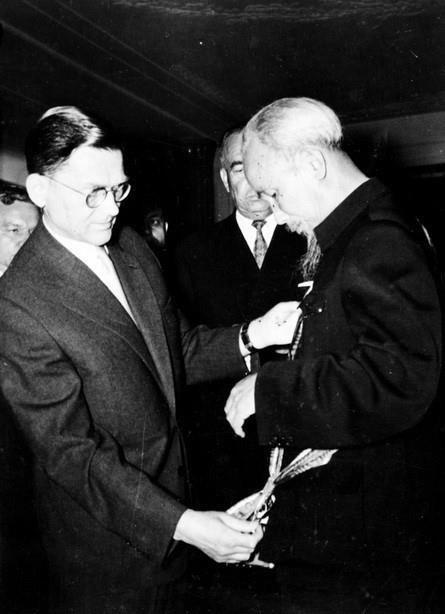 Đại diện Hội đồng Quốc gia Ba Lan trao tặng Huân chương Phục Hưng cho Chủ tịch Hồ Chí Minh - Huân chương cao quý nhất của Ba Lan (24/7/1957). Ảnh: TTXVN