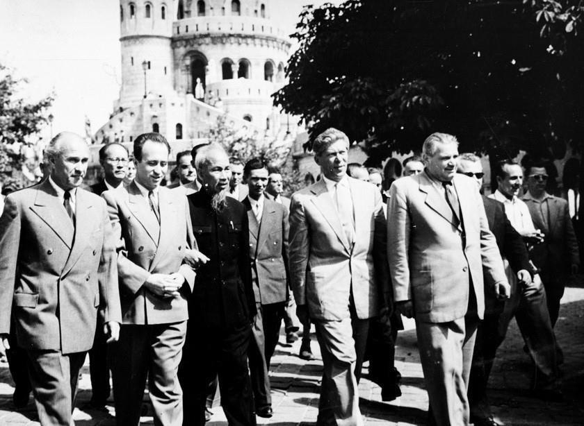Chủ tịch Hồ Chí Minh đến thăm Pháo đài "Người đánh cá" (Halászbástya) ở Thủ đô Budapest trong chuyến thăm Hungaria (4/8/1957). Ảnh: TTXVN