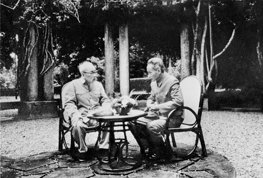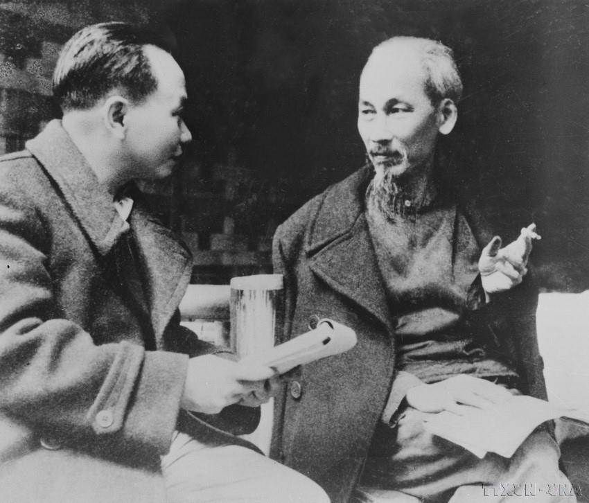 Chủ tịch Hồ Chí Minh và Tổng Bí thư Đảng Lao động Việt Nam Trường Chinh trong một buổi làm việc (Hà Nội, 1955). Ảnh: TTXVN phát