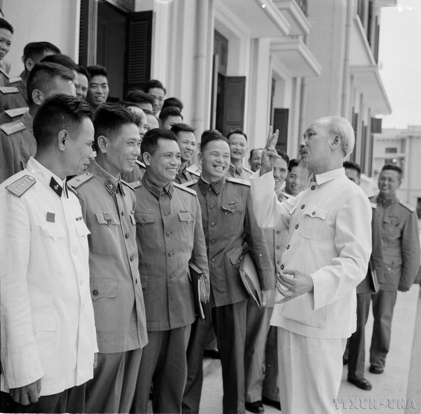 Chủ tịch Hồ Chí Minh nói chuyện với các đại biểu quân đội về dự Đại hội Đại biểu toàn quốc lần thứ III của Đảng (9/1960). Ảnh: TTXVN