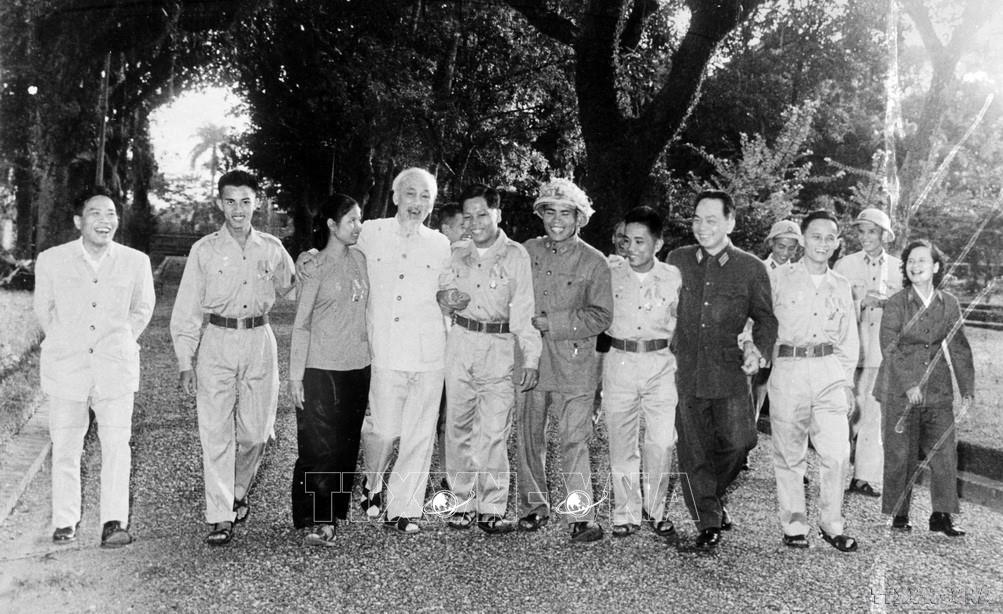 Chủ tịch Hồ Chí Minh cùng các đại biểu anh hùng, chiến sỹ thi đua các lực lượng vũ trang nhân dân Giải phóng miền Nam ra thăm miền Bắc (15/11/965, Hà Nội). Ảnh: TTXVN