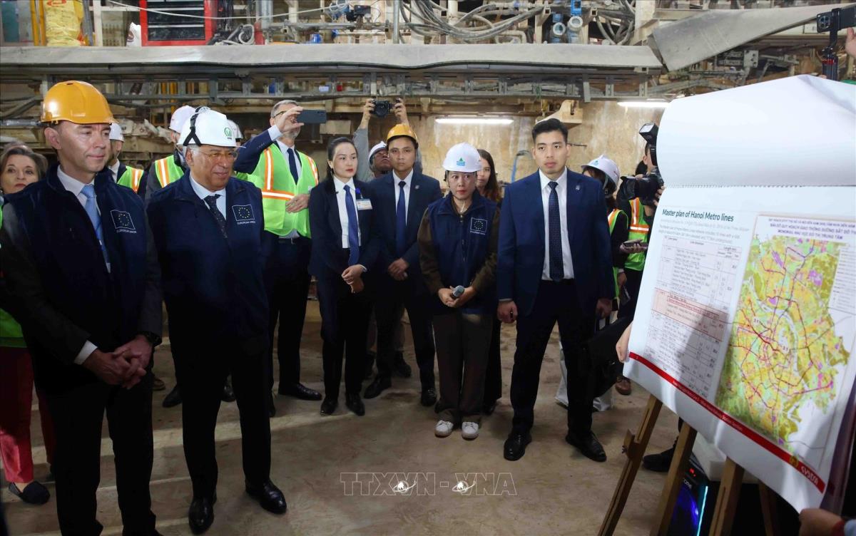 Chủ tịch Hội đồng châu Âu António Costa thăm dự án metro tuyến số 3 (29/1/2026). Ảnh: Phạm Kiên - TTXVN