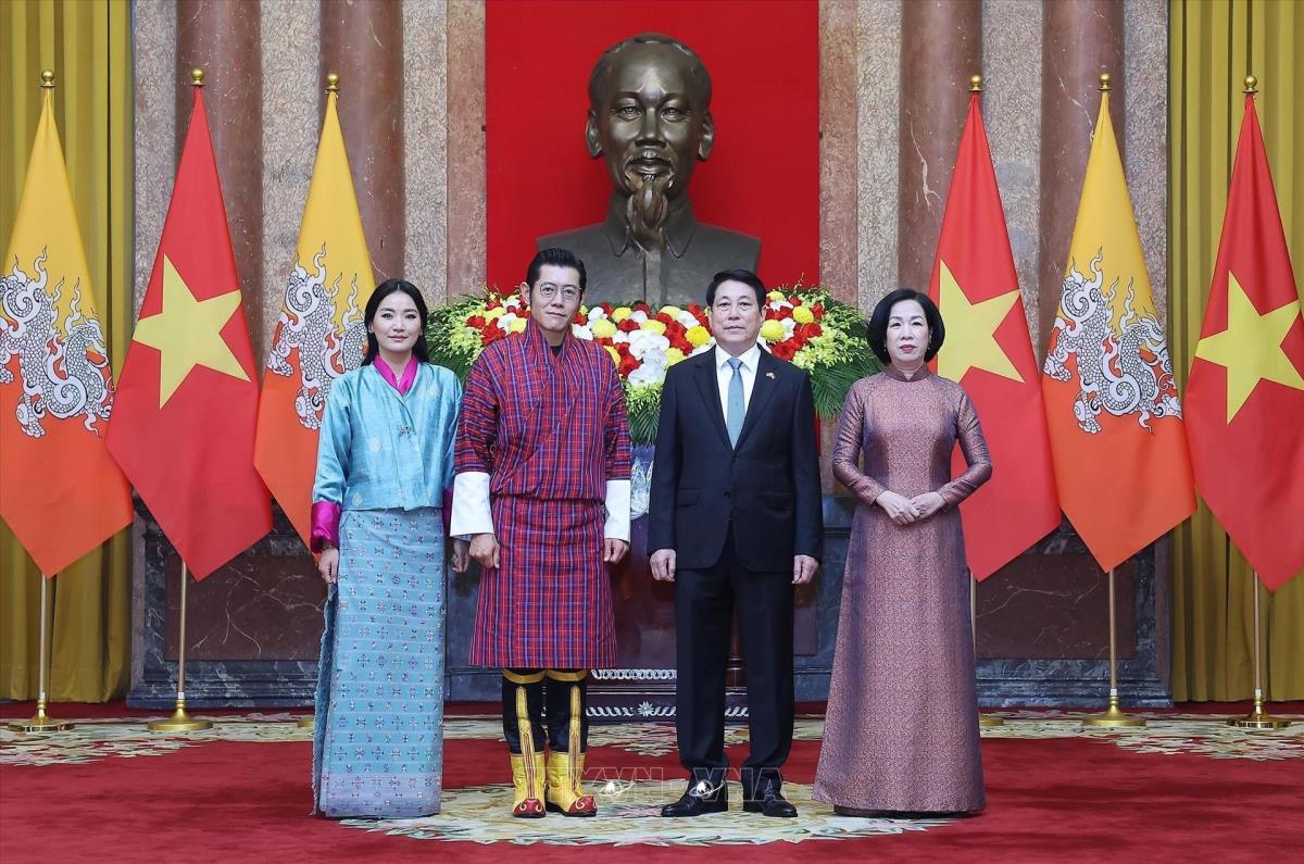 Chủ tịch nước Lương Cường và Phu nhân cùng Quốc vương Bhutan Jigme Khesar Namgyel Wangchuck và Hoàng hậu tại Phủ Chủ tịch (19/8/2025). Ảnh: Lâm Khánh – TTXVN