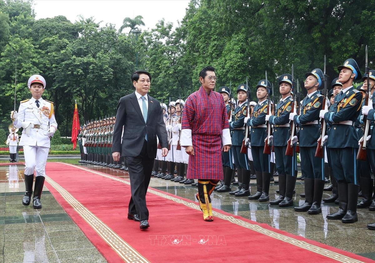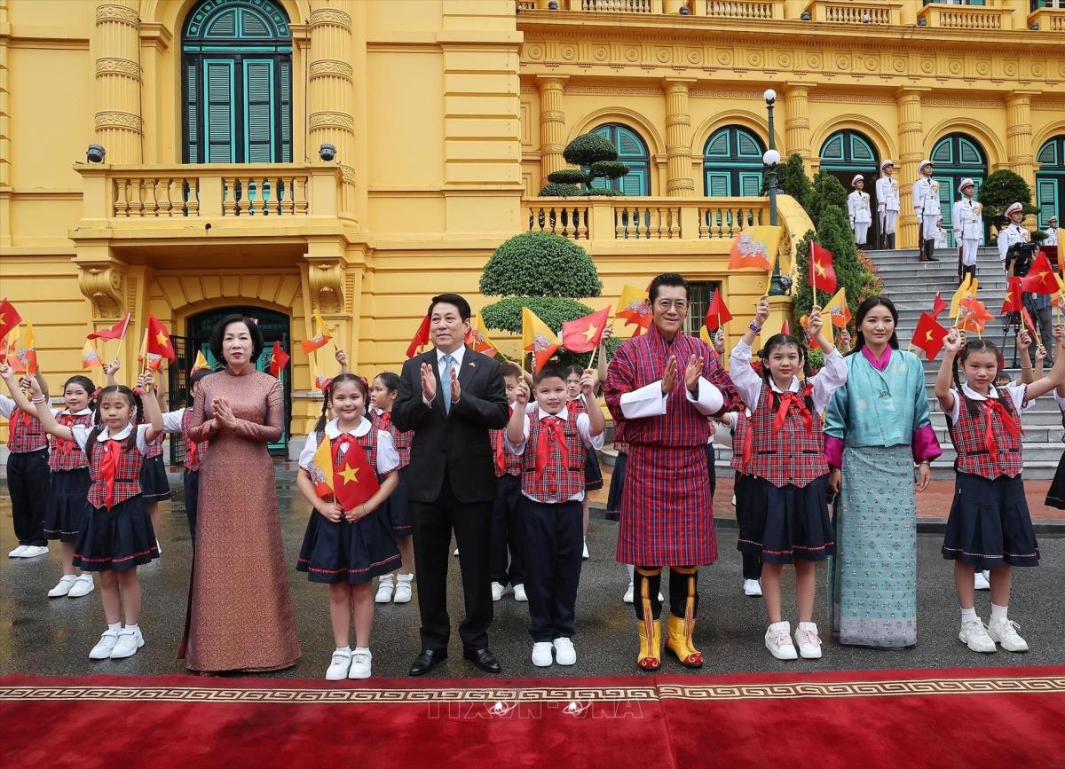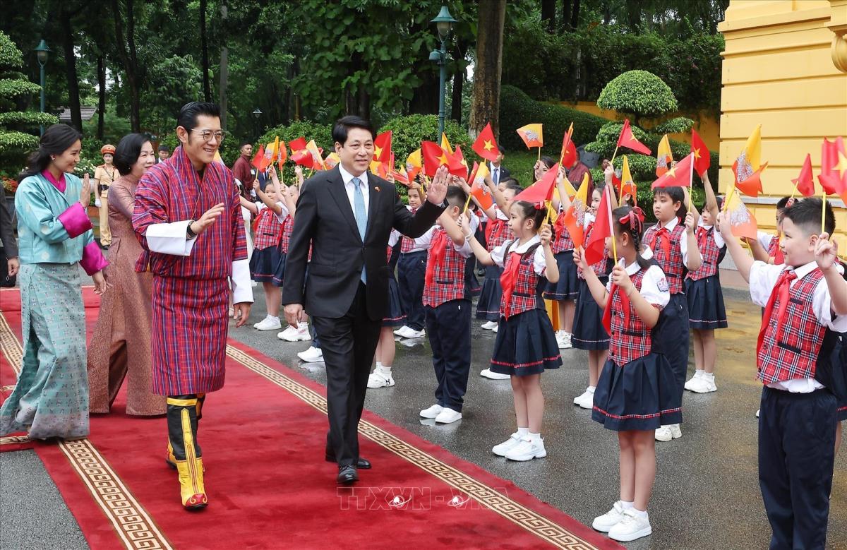 Hà Nội (TTXVN 19/8/2025) Sáng 19/8/2025, tại Phủ Chủ tịch, Chủ tịch nước Lương Cường và Phu nhân chủ trì Lễ đón chính thức Quốc vương Bhutan Jigme Khesar Namgyel Wangchuck và Hoàng hậu thăm cấp Nhà nước tới Việt Nam.