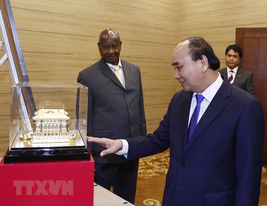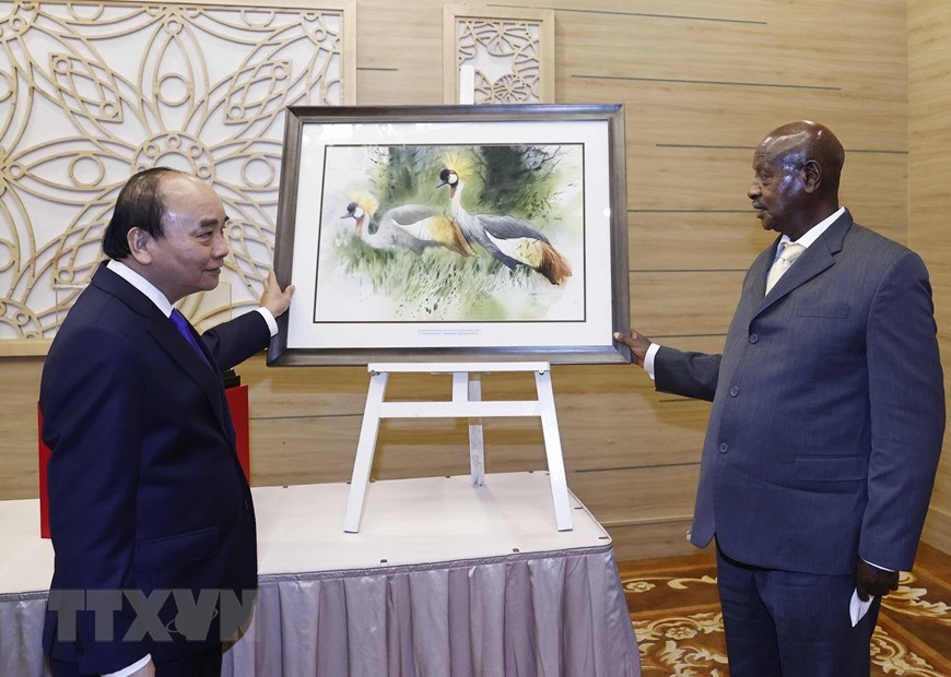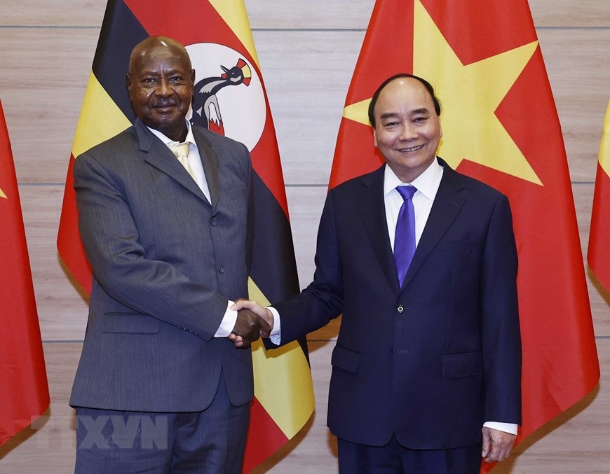 Chủ tịch nước Nguyễn Xuân Phúc và Tổng thống nước Cộng hòa Uganda Yoweri Kaguta Museveni. (Ảnh: Thống Nhất/TTXVN)