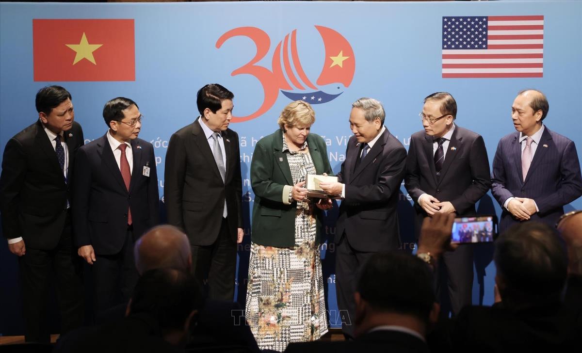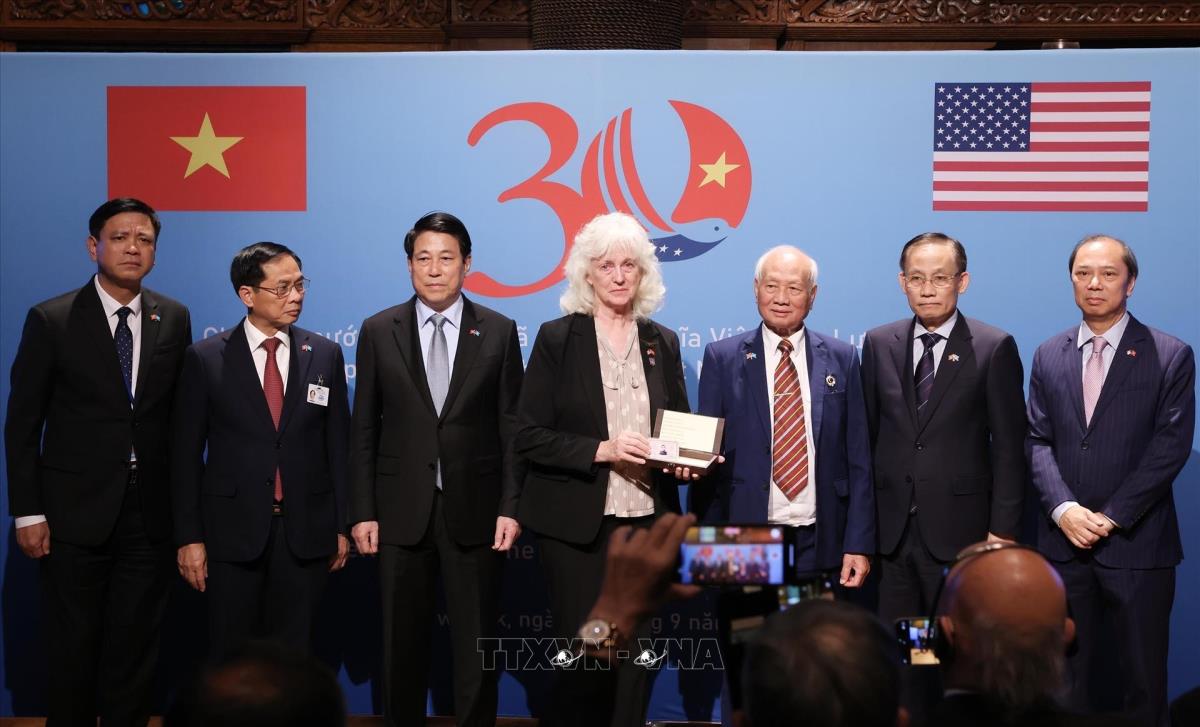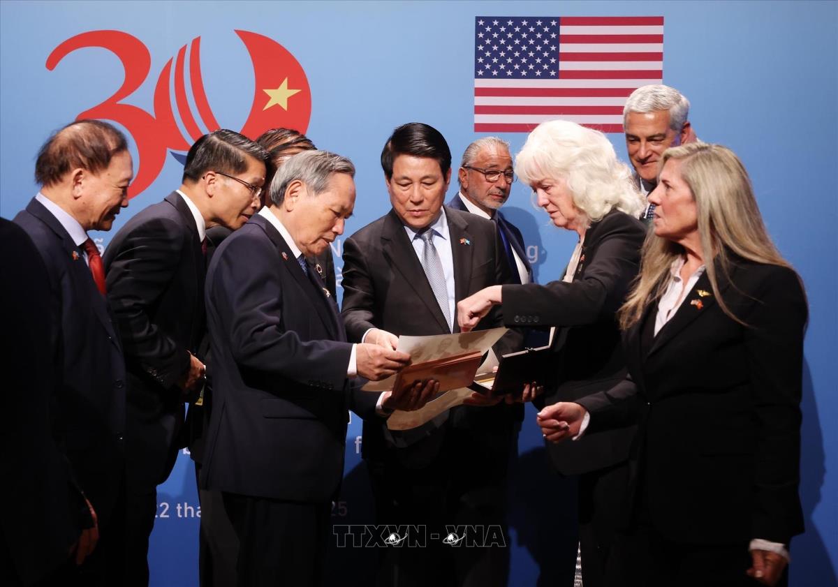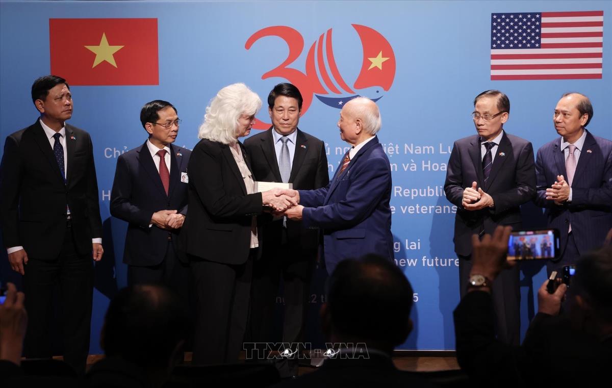 Chủ tịch nước Lương Cường chứng kiến lễ trao trả kỷ vật chiến tranh cho cựu chiến binh, gia đình cựu chiến binh Hoa Kỳ (22/9/2025). Ảnh: Lâm Khánh – TTXVN