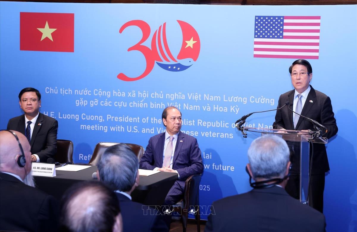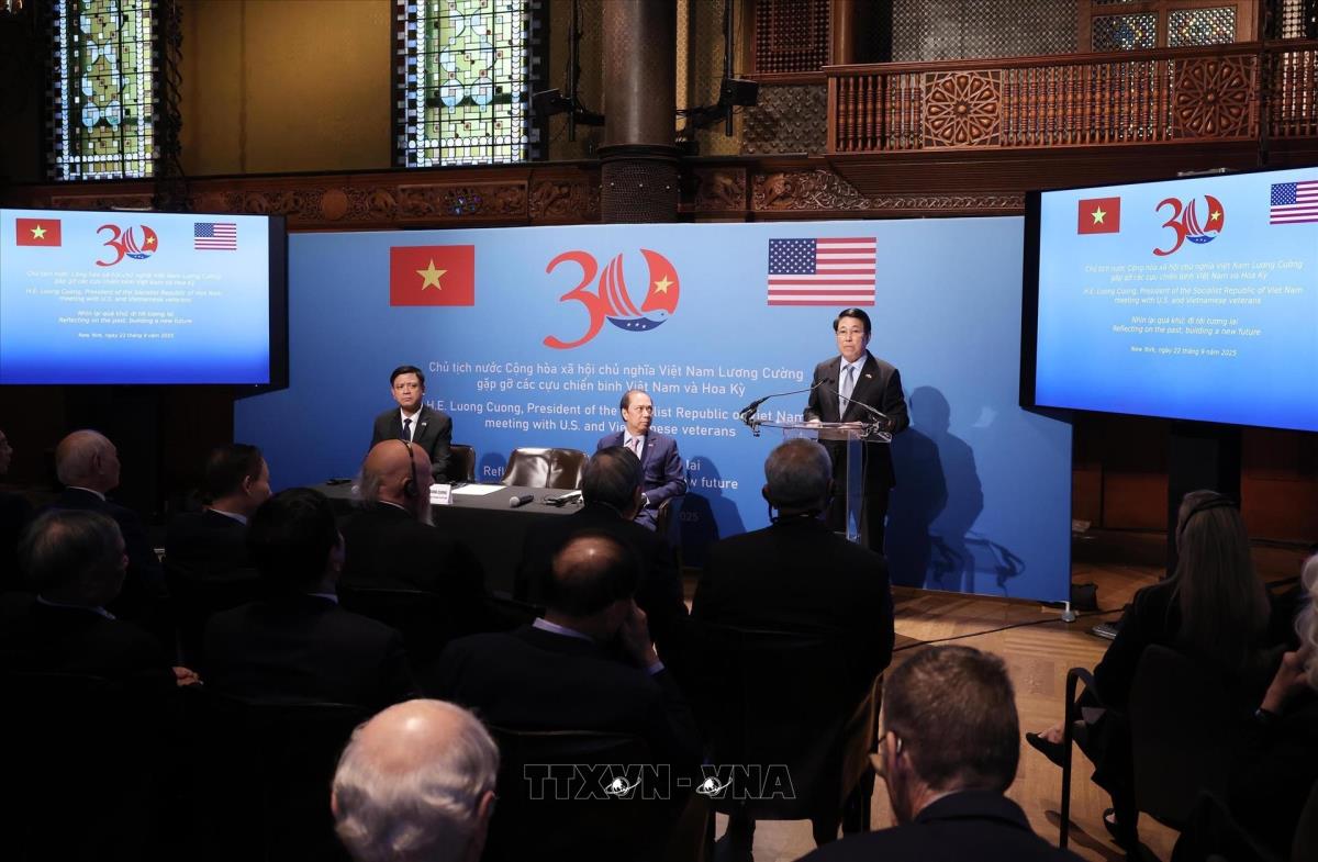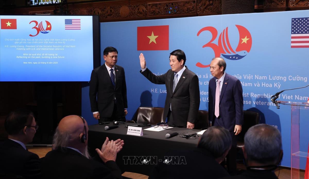 Hà Nội (TTXVN 23/9/2025) Chiều 22/9/2025, giờ địa phương (sáng 23/9, giờ Hà Nội), tại thành phố New York, Chủ tịch nước Lương Cường gặp gỡ các cựu chiến binh Việt Nam và Hoa Kỳ, nhân chuyến tham dự Phiên Thảo luận chung cấp cao Đại hội đồng Liên hợp quốc Khóa 80, kết hợp hoạt động song phương tại Hoa Kỳ.