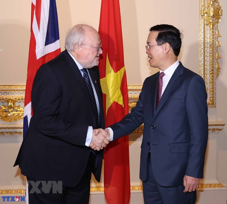 Chủ tịch nước Võ Văn Thưởng với Đặc phái viên về Thương mại với Việt Nam, Nghị sỹ Mark Garnier. (Ảnh: Thống Nhất/TTXVN)