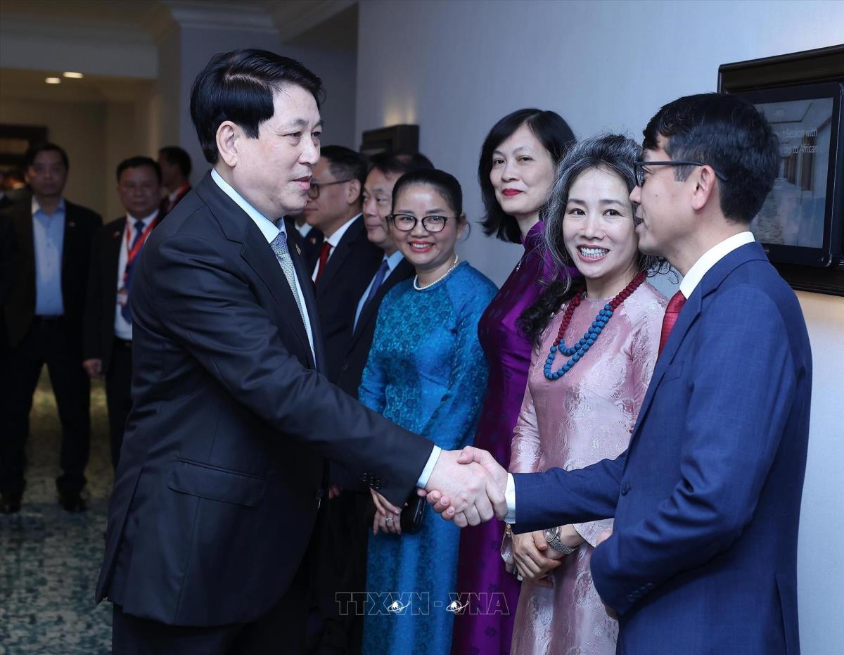 Chủ tịch nước Lương Cường với các Đại sứ Việt Nam tại khu vực châu Phi (3/8/2025). Ảnh: Lâm Khánh - TTXVN