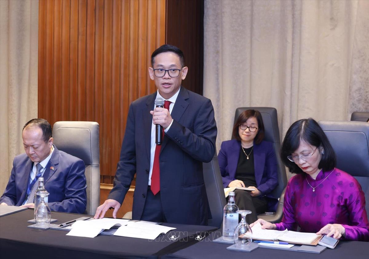 Đại sứ Việt Nam tại Ai Cập Nguyễn Huy Dũng báo cáo tình hình với Chủ tịch nước Lương Cường (3/8/2025). Ảnh: Lâm Khánh - TTXVN