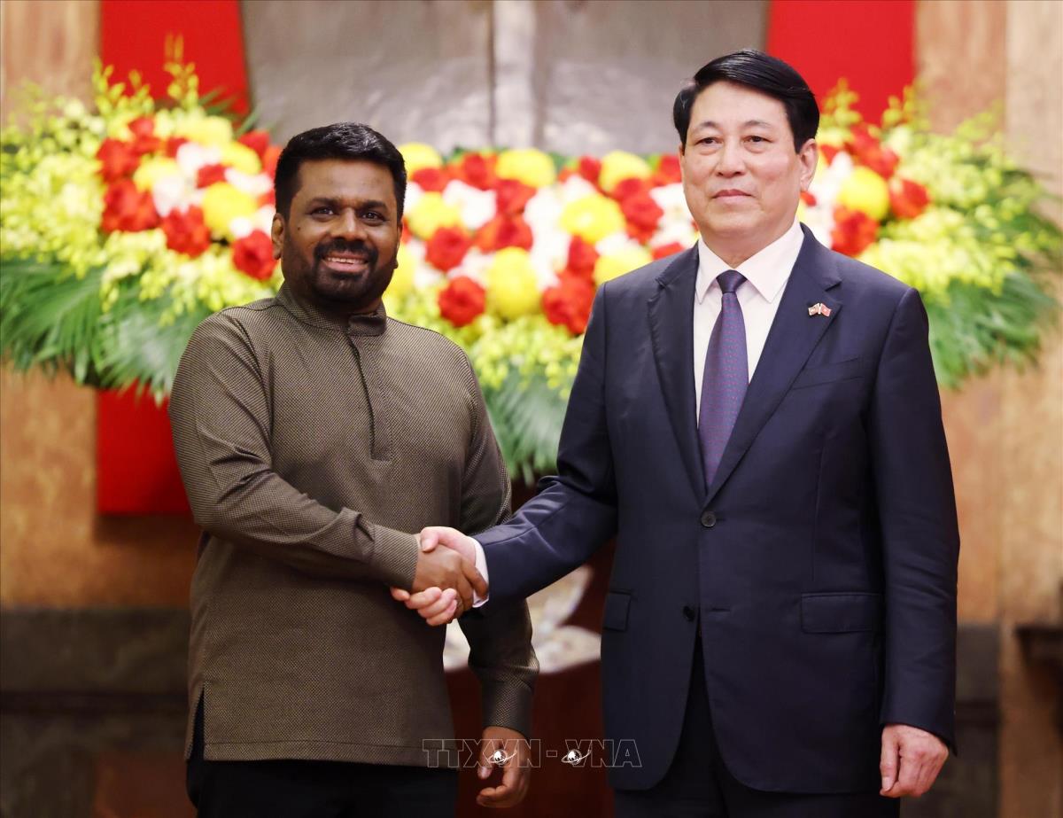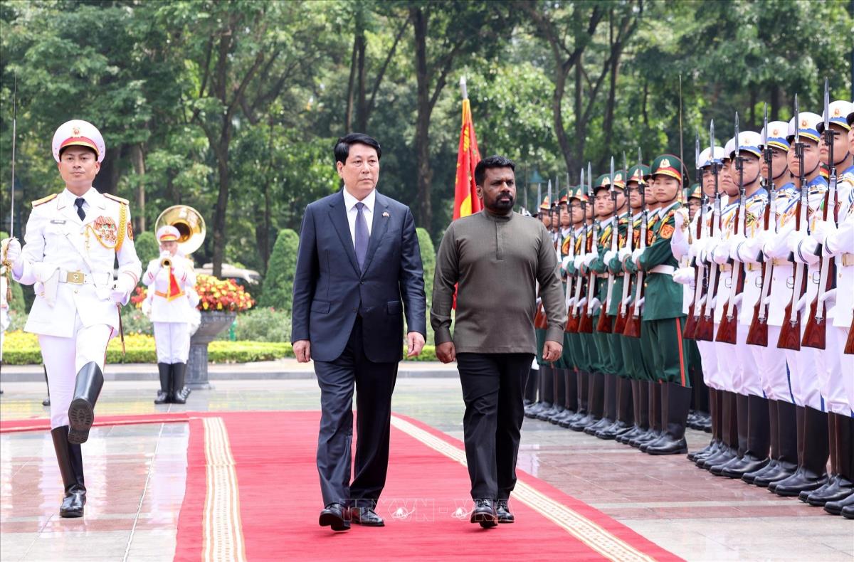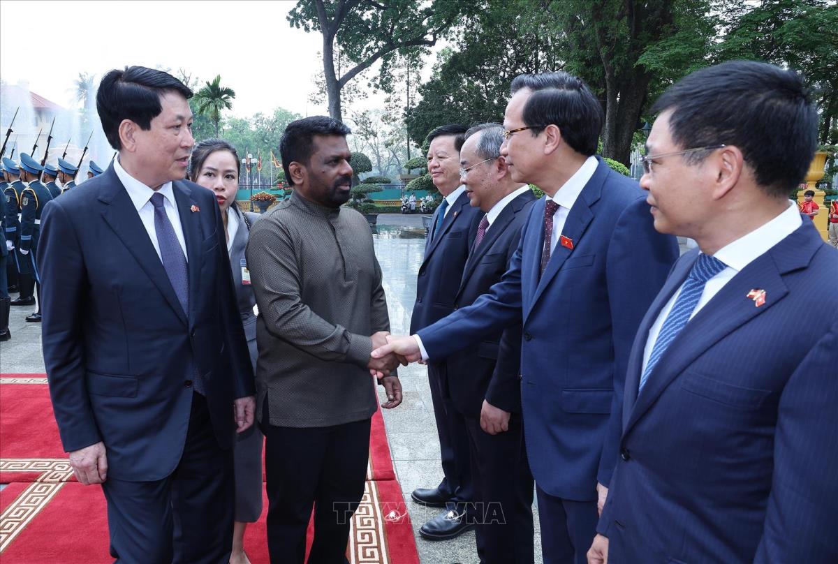 Chủ tịch nước Lương Cường đón Tổng thống Sri Lanka Anura Kumara Dissanayaka (5/5/2025). Ảnh: Lâm Khánh – TTXVN