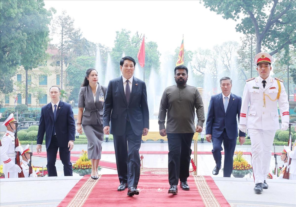 Chủ tịch nước Lương Cường chủ trì Lễ đón chính thức Tổng thống Sri Lanka Anura Kumara Dissanayaka thăm cấp Nhà nước đến Việt Nam (5/5/2025). Ảnh: Lâm Khánh – TTXVN