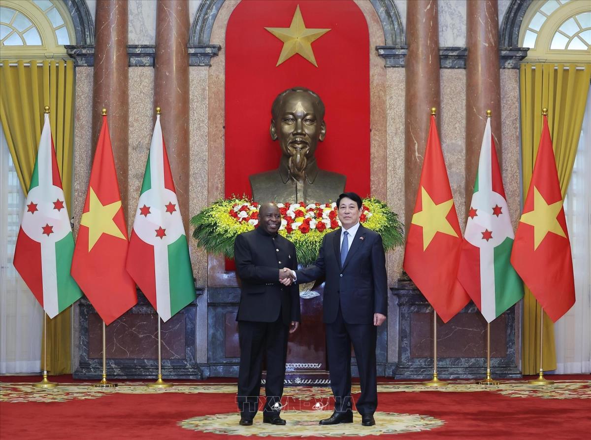 Chủ tịch nước Lương Cường và Tổng thống Cộng hòa Burundi Évariste Ndayishimiye (4/4/2025). Ảnh: Lâm Khánh TTXVN