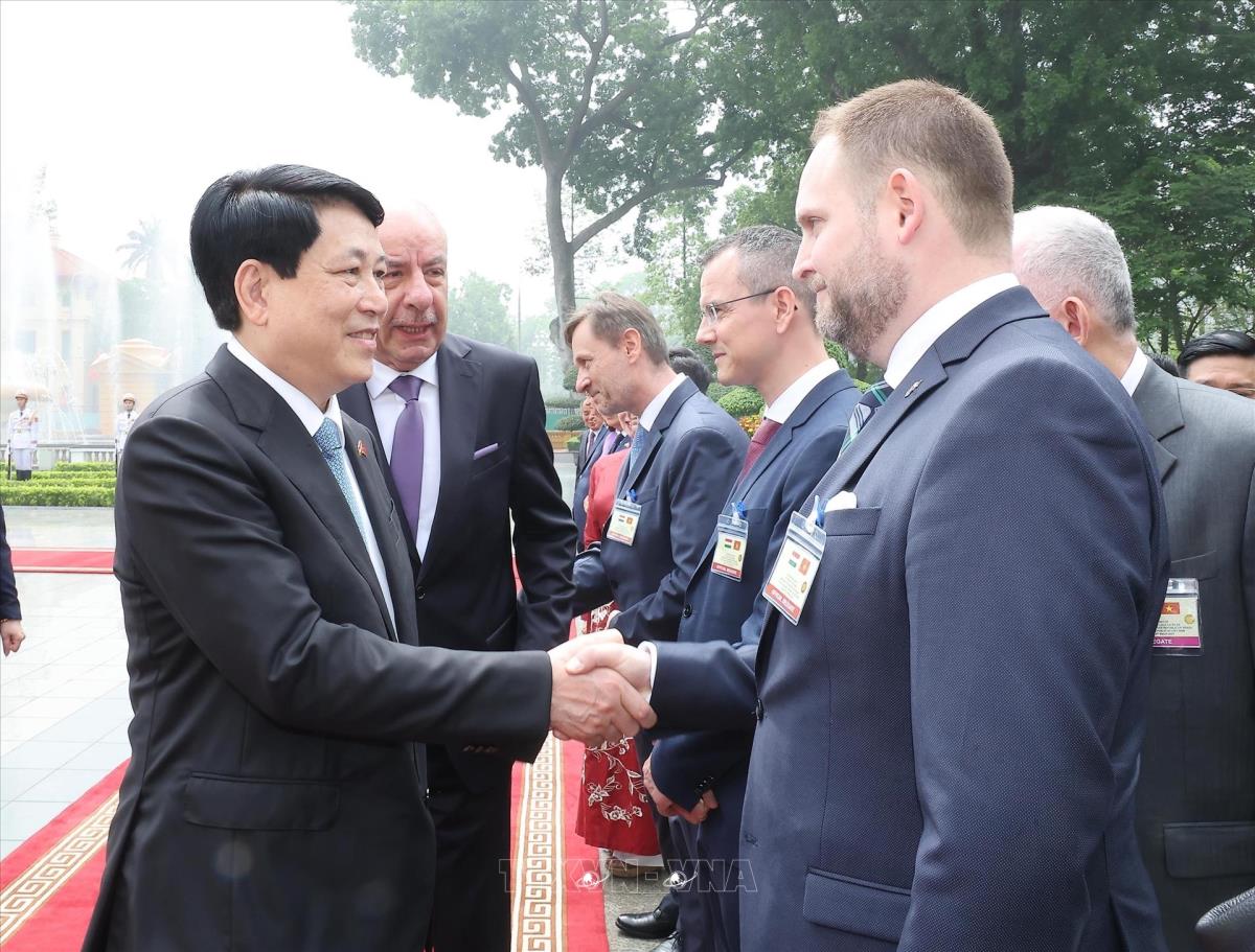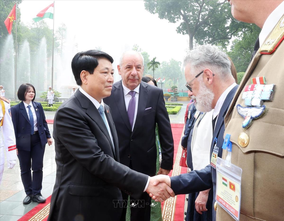 Hà Nội (TTXVN 28/5/2025) Sáng 28/5/2025, tại Phủ Chủ tịch, Chủ tịch nước Lương Cường và Phu nhân chủ trì Lễ đón Tổng thống Hungary Sulyok Tamas và Phu nhân thăm chính thức Việt Nam.