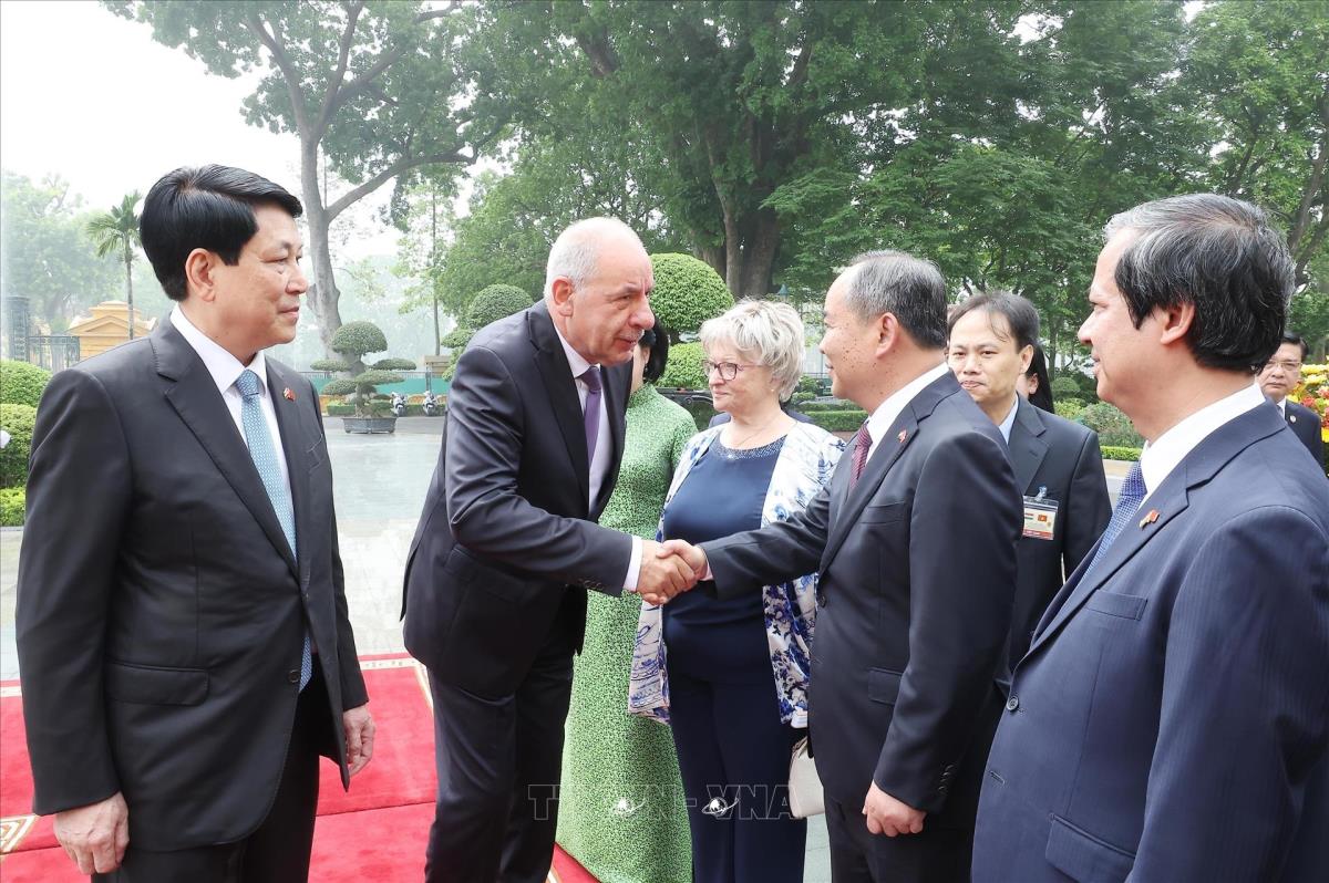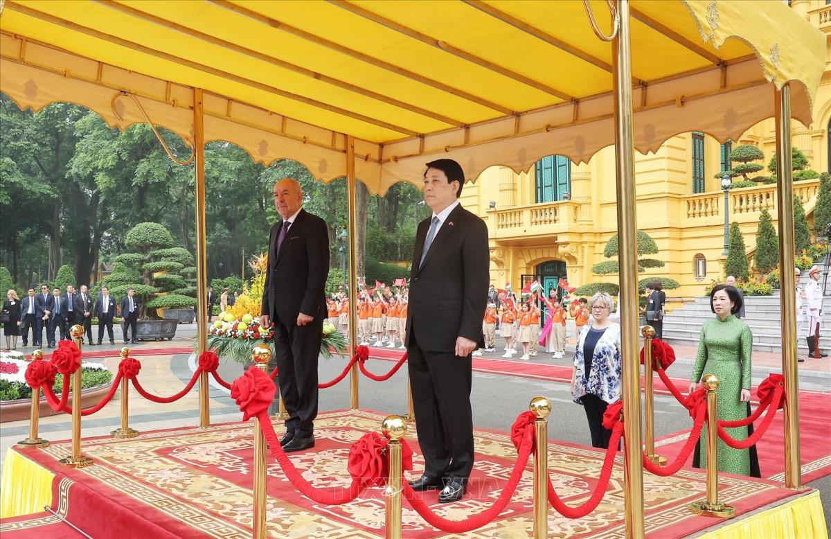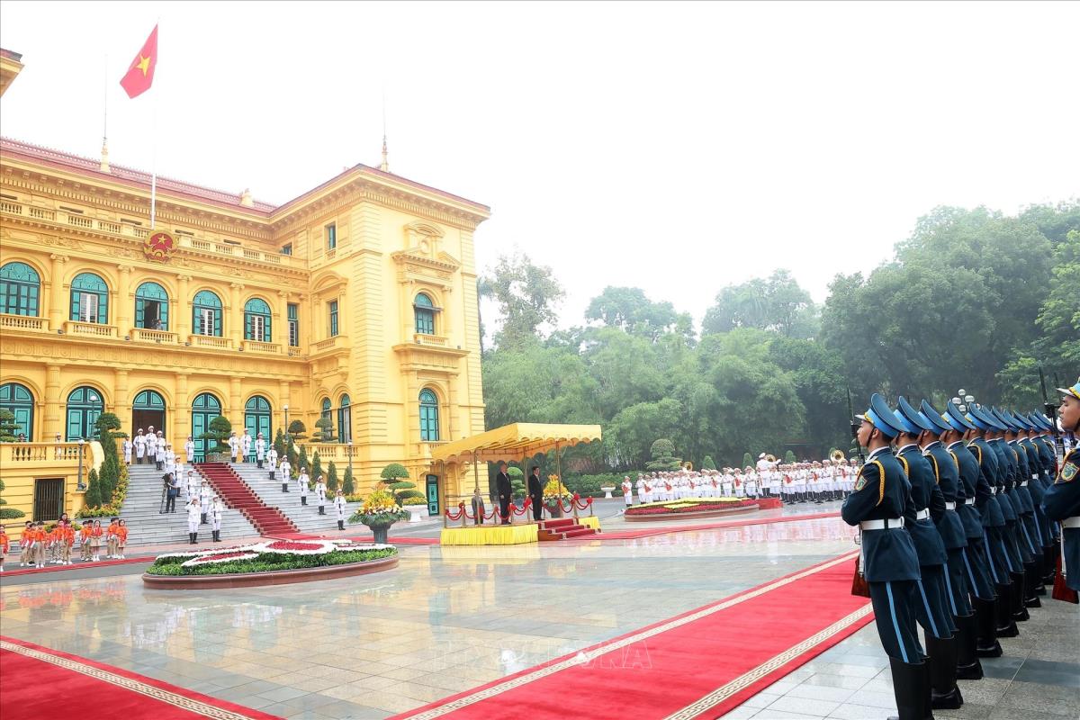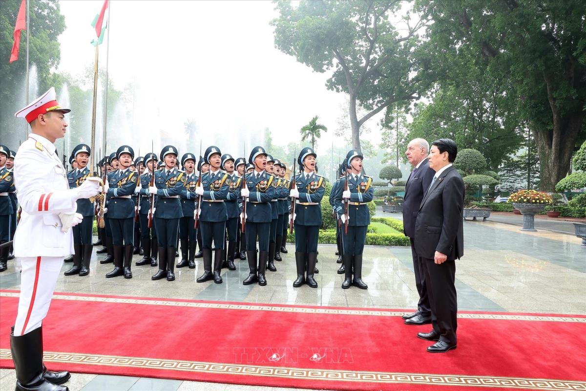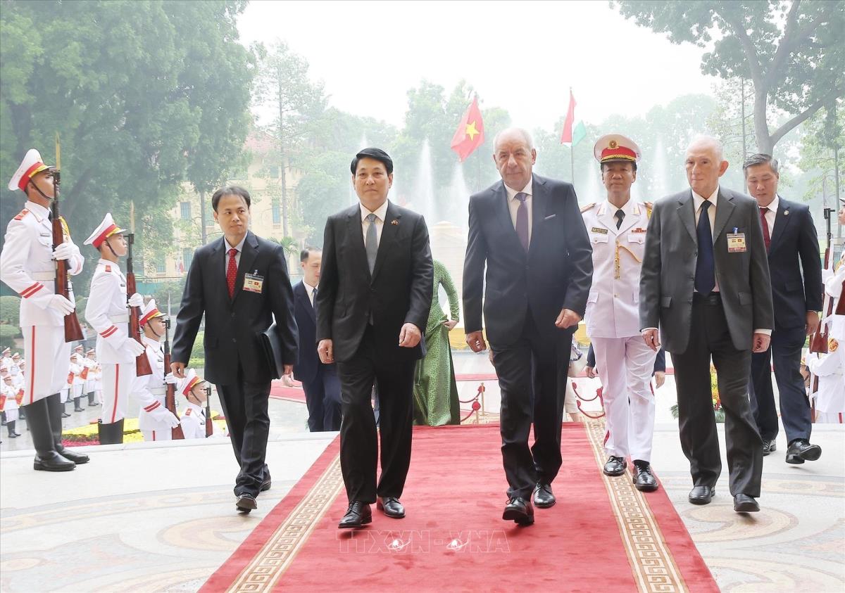 [Photo] Chủ tịch nước Lương Cường chủ trì lễ đón Tổng thống Hungary Sulyok Tamas