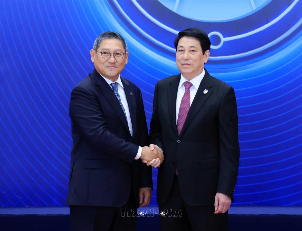 [Photo] Chủ tịch nước Lương Cường đón các Trưởng đoàn cấp cao dự Lễ mở ký Công ước Hà Nội