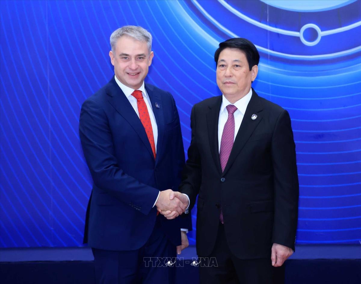 Chủ tịch nước Lương Cường đón Chủ tịch Hạ viện Uzbekistan Nuriddinjon Ismailov dự Lễ mở ký và Hội nghị cấp cao Công ước Liên hợp quốc về chống tội phạm mạng tại Hà Nội, từ ngày 25-26/10/2025. Ảnh: Lâm Khánh – TTXVN