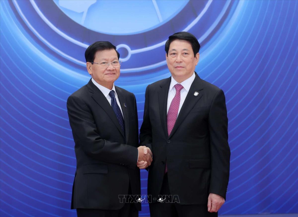 Chủ tịch nước Lương Cường đón Tổng Bí thư, Chủ tịch nước Lào Thongloun Sisoulith dự Lễ mở ký Công ước Hà Nội (25/10/2025). Ảnh: TTXVN