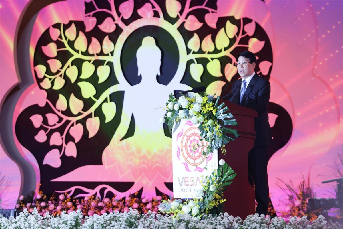 Trong không khí trang nghiêm của Đại lễ Vesak 2025, thay mặt lãnh đạo Đảng, Nhà nước, Chủ tịch nước Lương Cường nhiệt liệt chào mừng sự có mặt của các vị nguyên thủ các quốc gia, lãnh đạo các chính phủ, các tổ chức quốc tế và đông đảo quý vị chư tôn đức giáo phẩm đại diện cho Phật giáo trên toàn thế giới, cùng quý vị đại biểu, đồng bào, tăng ni, phật tử Việt Nam ở trong nước và ở ngoài nước; khẳng định đây là biểu hiện sinh động của tinh thần đoàn kết, từ bi và hòa hợp.