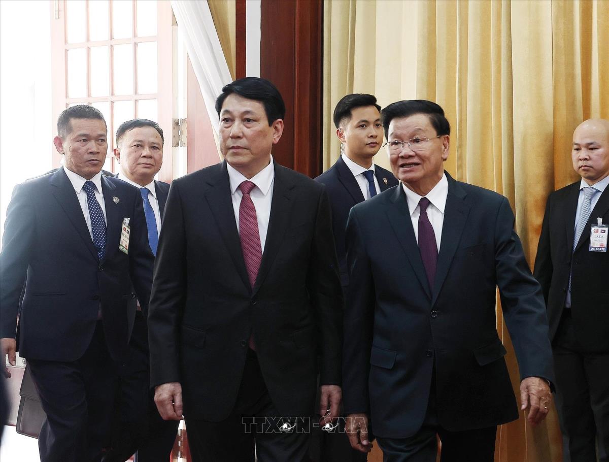 [Photo] Chủ tịch nước Lương Cường hội đàm với Tổng Bí thư, Chủ tịch nước Lào Thongloun Sisoulith