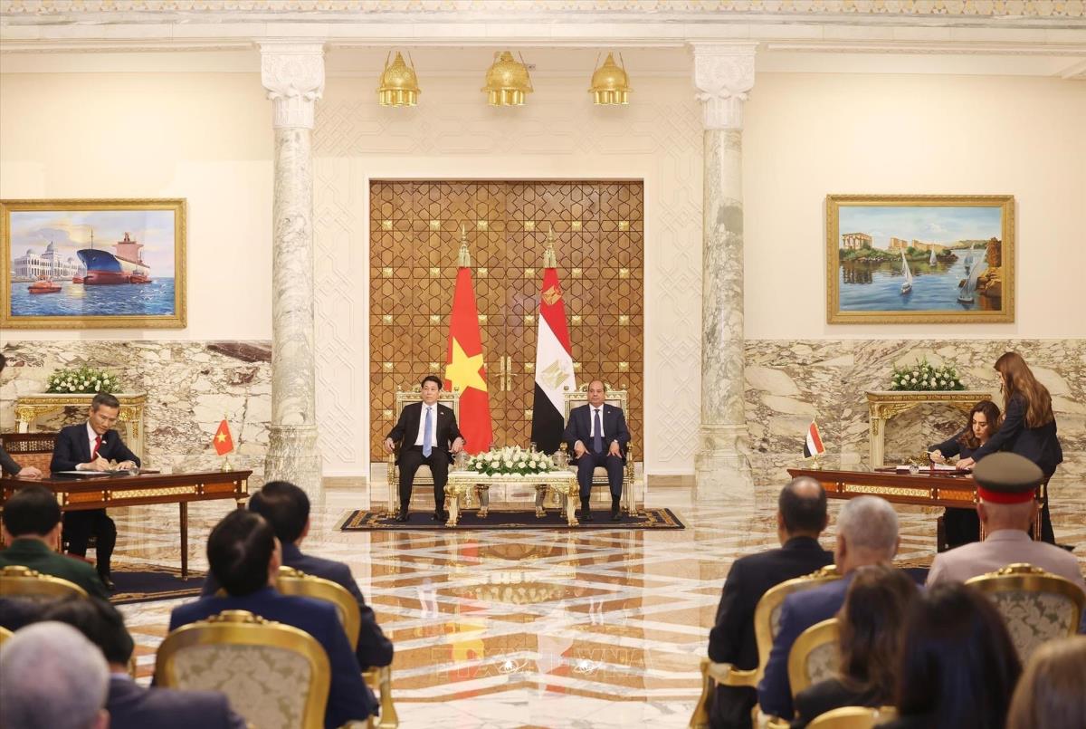 Tại các cuộc hội đàm, Tổng thống Abdel Fattah El-Sisi, thay mặt nhân dân Ai Cập, bày tỏ vui mừng được đón Chủ tịch nước Lương Cường và Phu nhân, và khẳng định chuyến thăm cấp Nhà nước của Chủ tịch nước và đoàn đại biểu cấp cao Việt Nam là một dấu mốc quan trọng, mở ra giai đoạn hợp tác mới cho quan hệ hai nước sau hơn 60 năm thiết lập quan hệ ngoại giao.