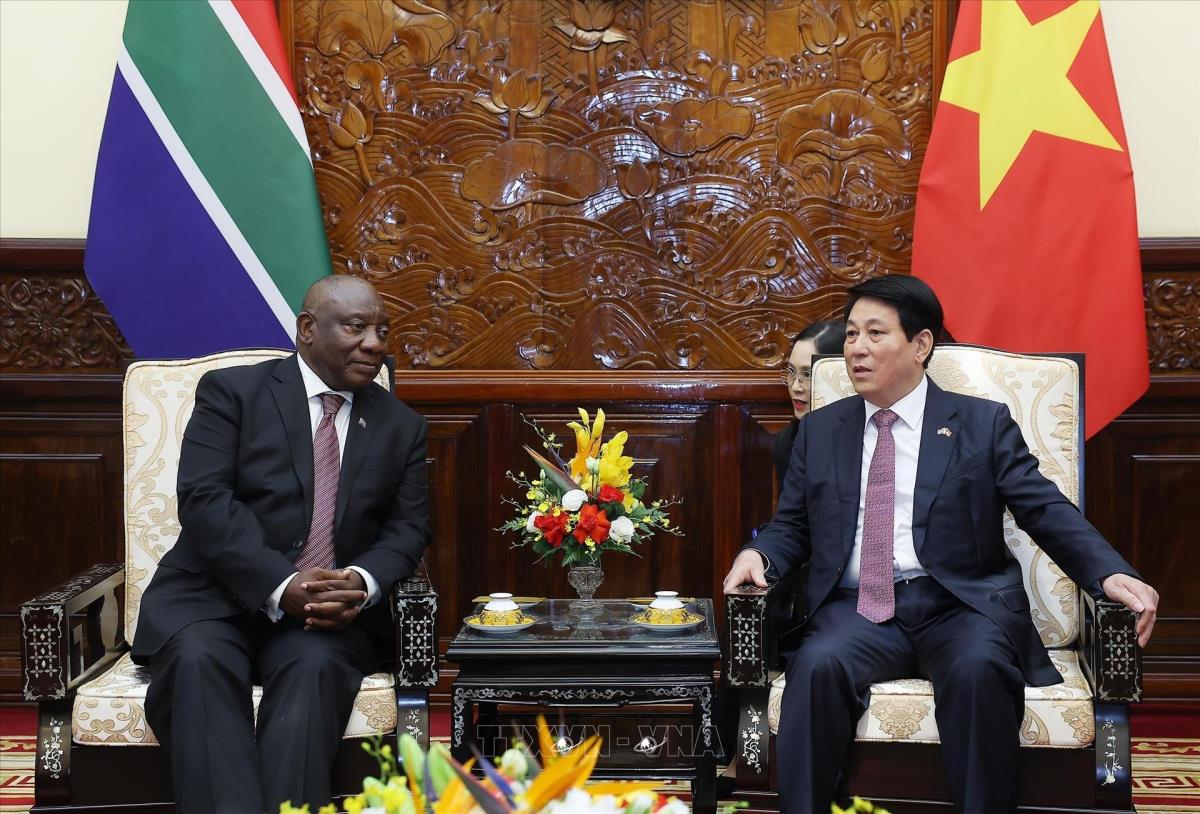 Chủ tịch nước Lương Cường và Tổng thống Nam Phi Matamela Cyril Ramaphosa hội đàm (23/10/2025). Ảnh: Lâm Khánh - TTXVN