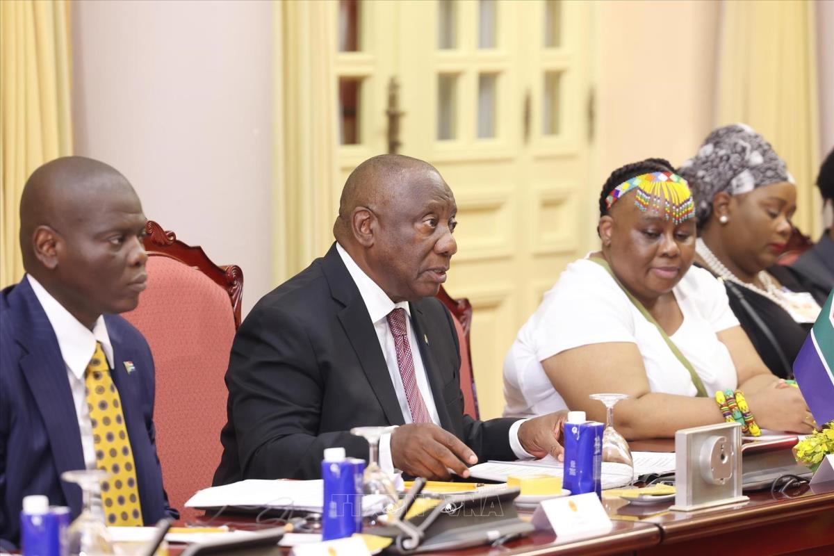 Tổng thống Matamela Cyril Ramaphosa chia sẻ, Việt Nam là người bạn thân thiết, đối tác quan trọng của Nam Phi tại khu vực châu Á, nhấn mạnh chuyến thăm lần này nhằm khẳng định quyết tâm của Nhà nước và Chính phủ Nam Phi trong việc củng cố và phát triển quan hệ đối tác quan trọng với Việt Nam trong chiến lược tăng cường mở rộng thị trường trong bối cảnh đang diễn ra nhiều chuyển đổi sâu sắc ở Nam Phi cũng như trên thế giới.