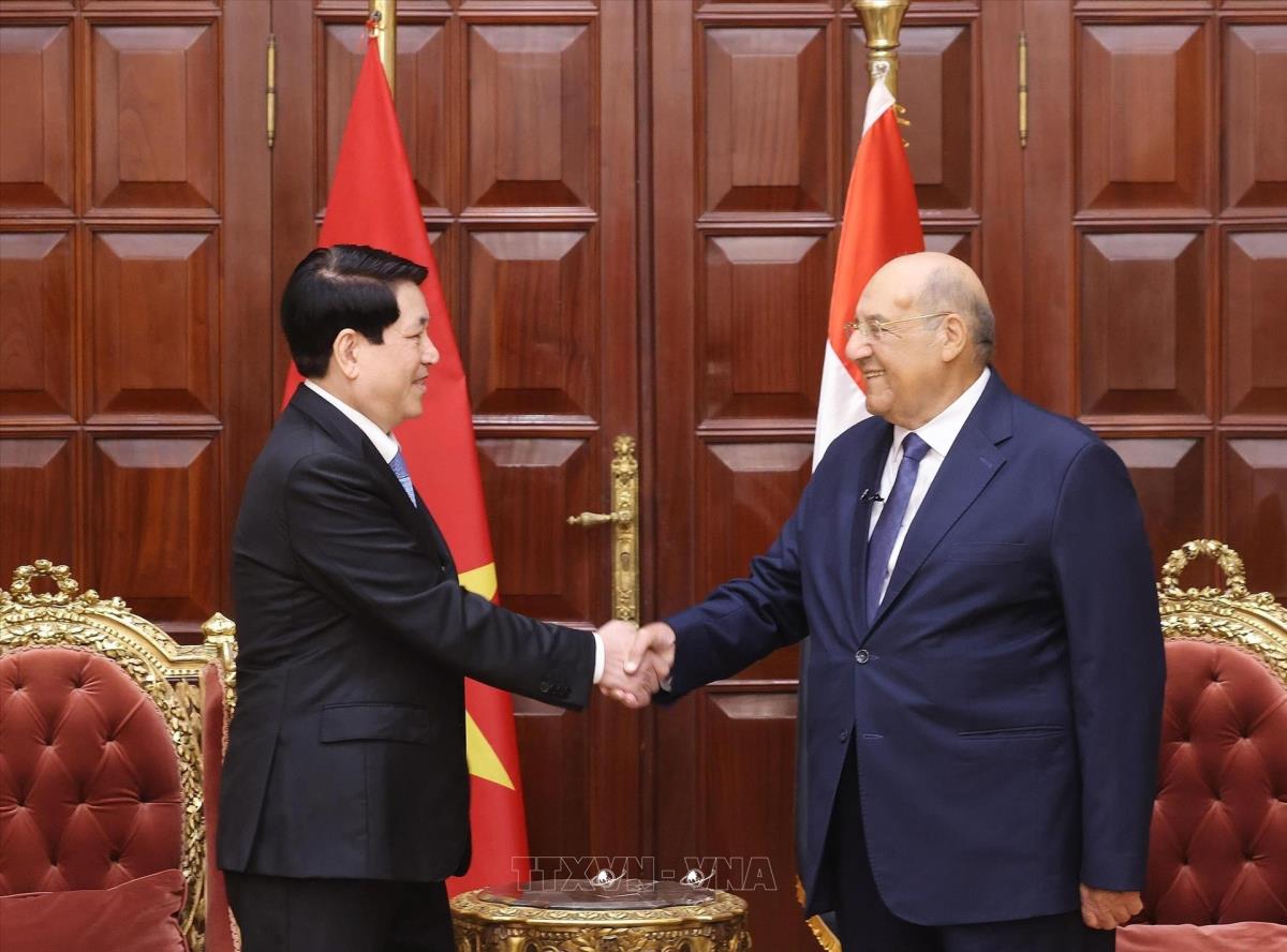 Chủ tịch nước Lương Cường hội kiến Chủ tịch Thượng viện Ai Cập Abdel-Wahab Abdel-Razek (6/8/2025). Ảnh: Lâm Khánh - TTXVN