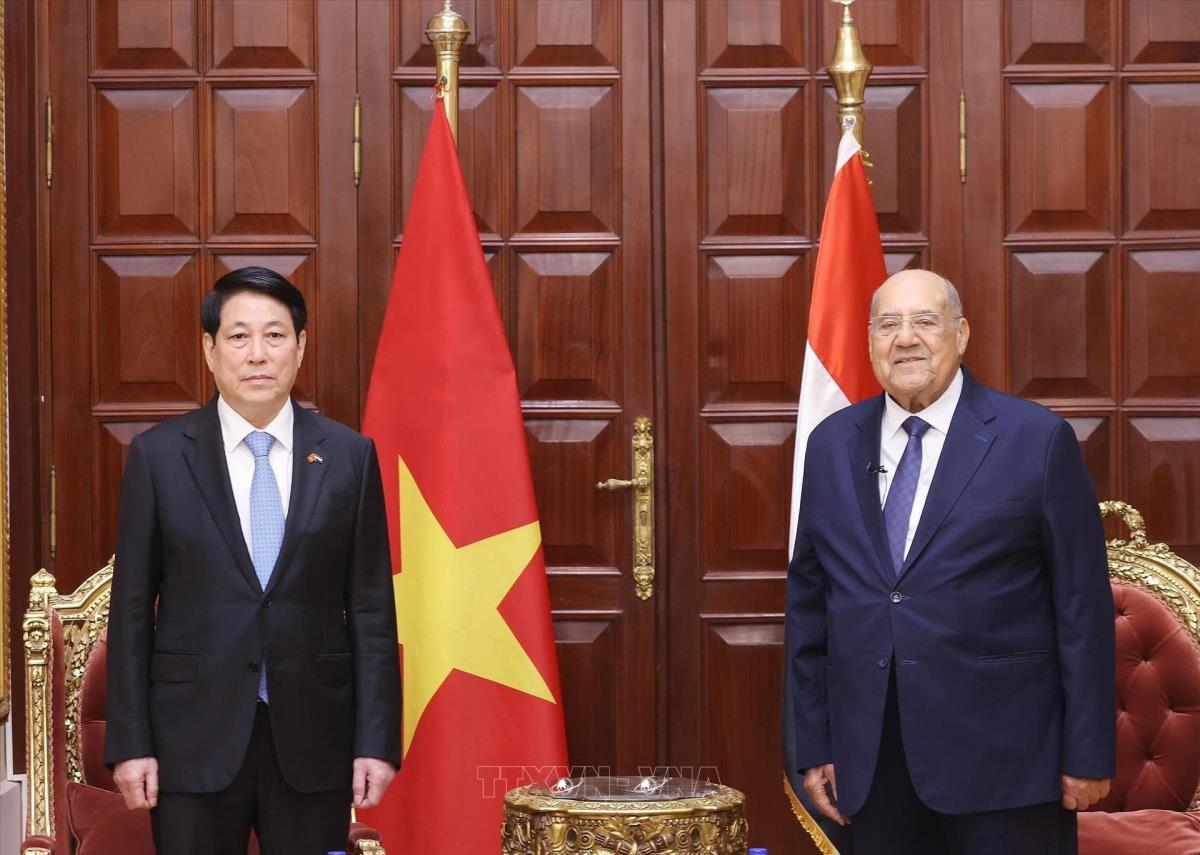 [Photo] Chủ tịch nước Lương Cường hội kiến Chủ tịch Thượng viện Ai Cập