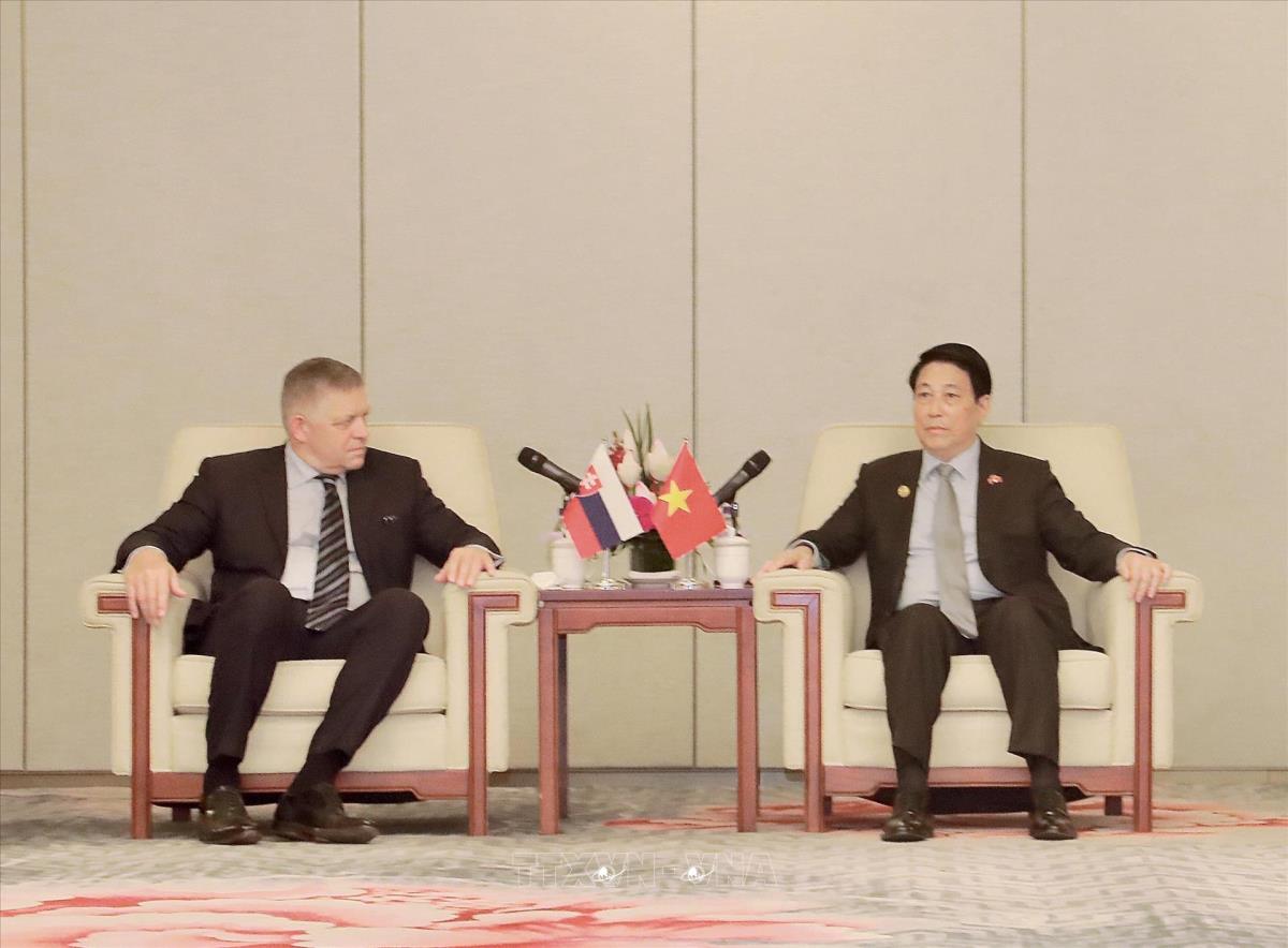 Hà Nội (TTXVN 3/9/2025) Nhân dịp tham dự Lễ kỷ niệm 80 năm chiến thắng phát xít của nhân dân thế giới tại Thủ đô Bắc Kinh, Trung Quốc, chiều 3/9/2025, Chủ tịch nước Lương Cường hội kiến Thủ tướng Slovakia Robert Fico. Ảnh: TTXVN