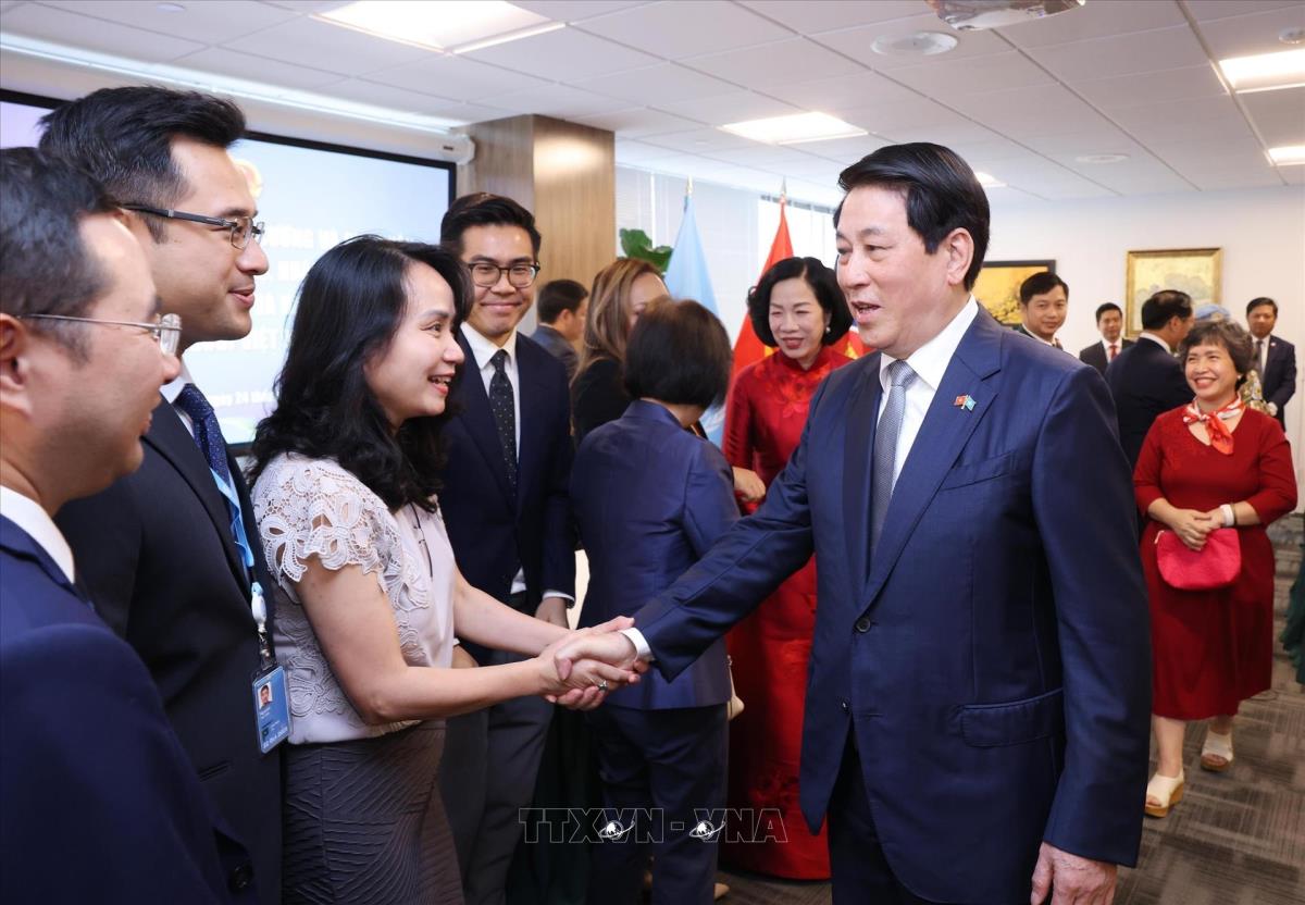 Chủ tịch nước Lương Cường thăm Trụ sở Phái đoàn Thường trực Việt Nam tại Liên hợp quốc (24/9/2025). Ảnh: Lâm Khánh – TTXVN