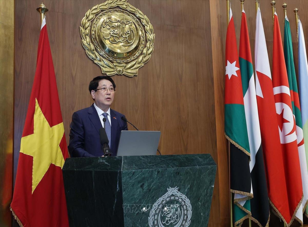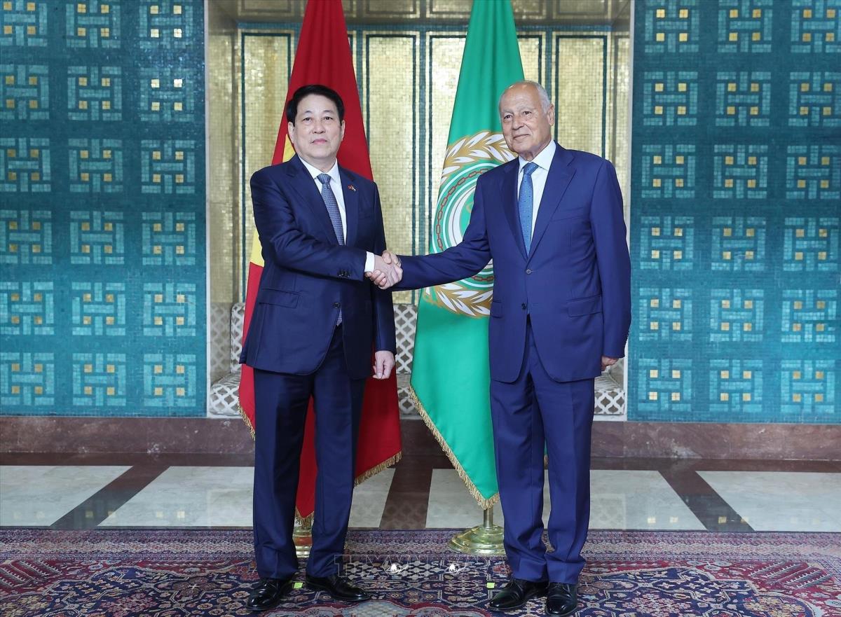 Chủ tịch nước Lương Cường thăm và phát biểu chính sách tại Liên đoàn Arập