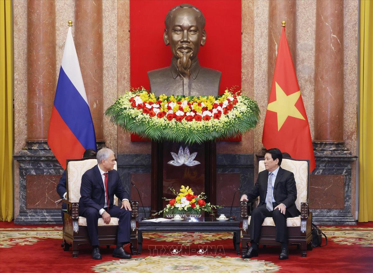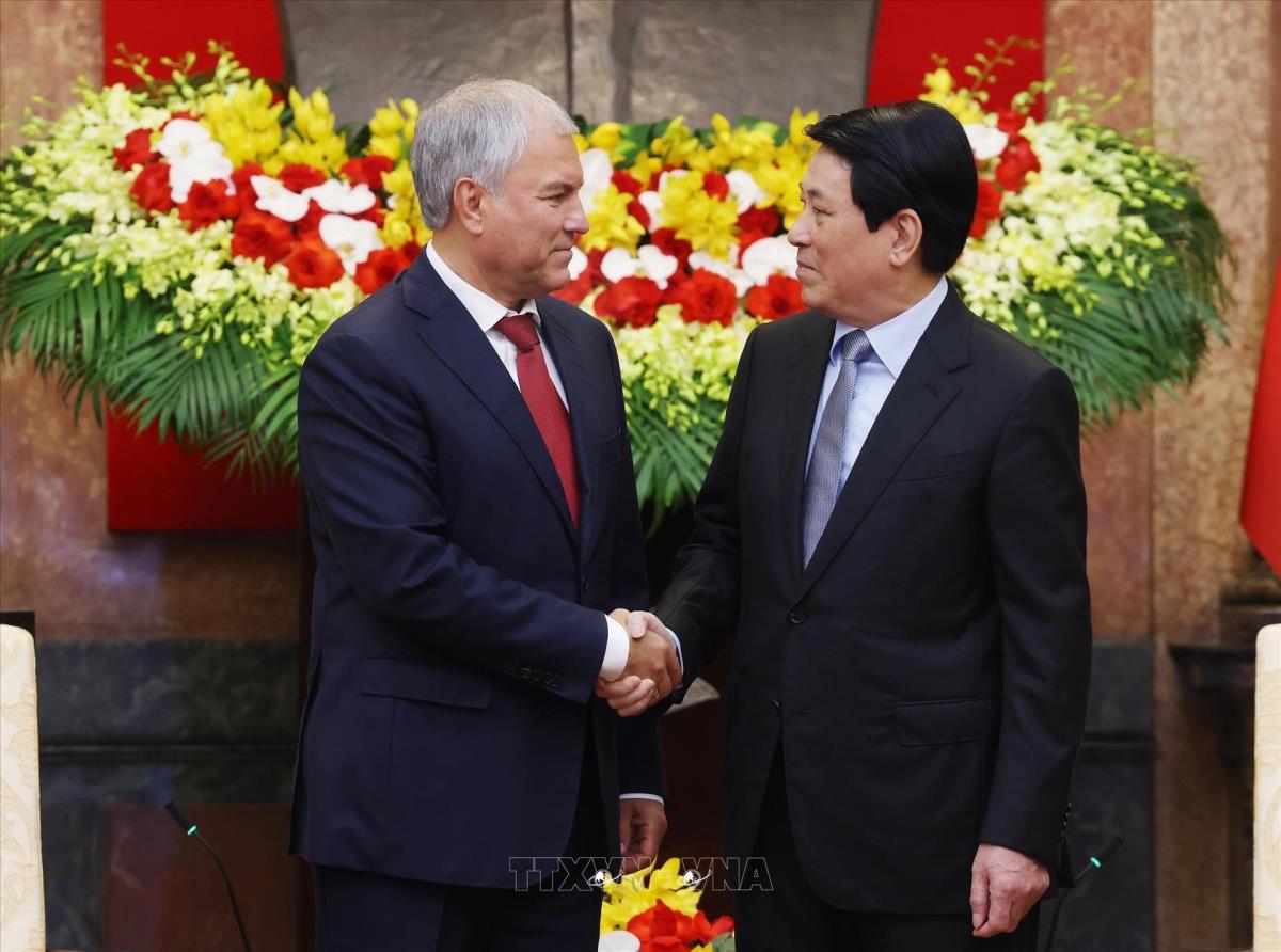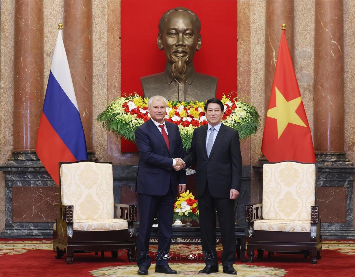 Chủ tịch nước Lương Cường tiếp Chủ tịch Duma Quốc gia Nga Vyacheslav Volodin (29/9/2025). Ảnh: Lâm Khánh – TTXVN