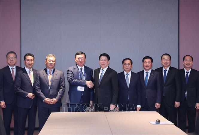 Hà Nội (TTXVN 30/10/2025) Theo đặc phái viên TTXVN, sáng 30/10, trong khuôn khổ hoạt động tham dự Tuần lễ Cấp cao Diễn đàn Hợp tác kinh tế châu Á - Thái Bình Dương (APEC) lần thứ 32 và làm việc song phương tại Hàn Quốc, Chủ tịch nước Lương Cường đã tiếp Chủ tịch Tập đoàn Lotte Shin Dong Bin.