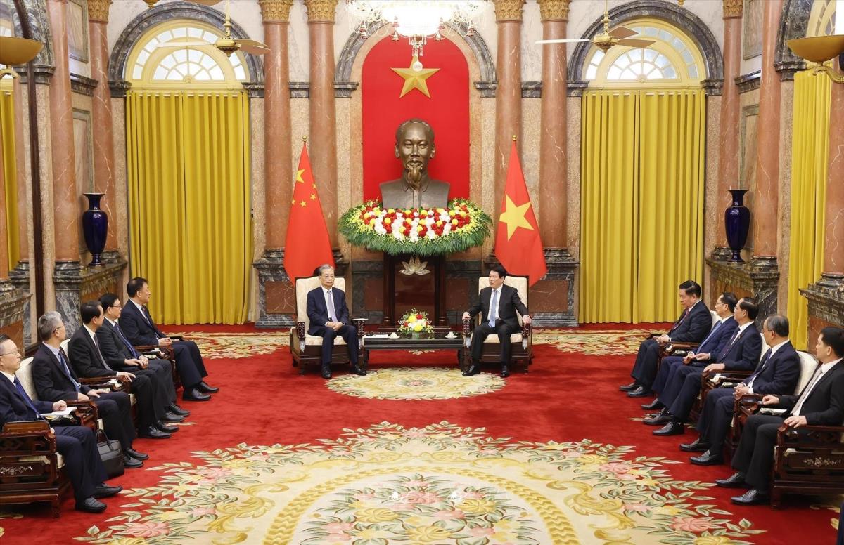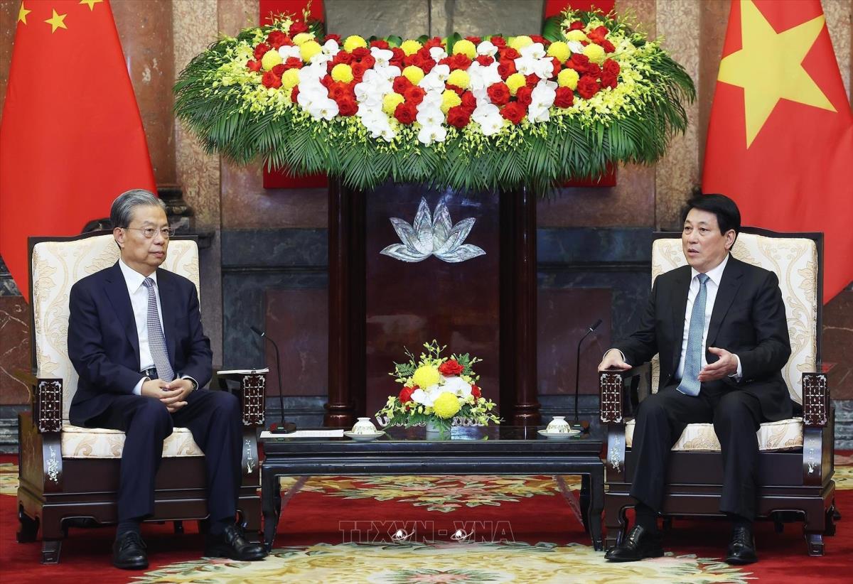 Chủ tịch nước Lương Cường tiếp Ủy viên trưởng Nhân đại toàn quốc Trung Quốc Triệu Lạc Tế (1/9/2025). Ảnh: Lâm Khánh - TTXVN