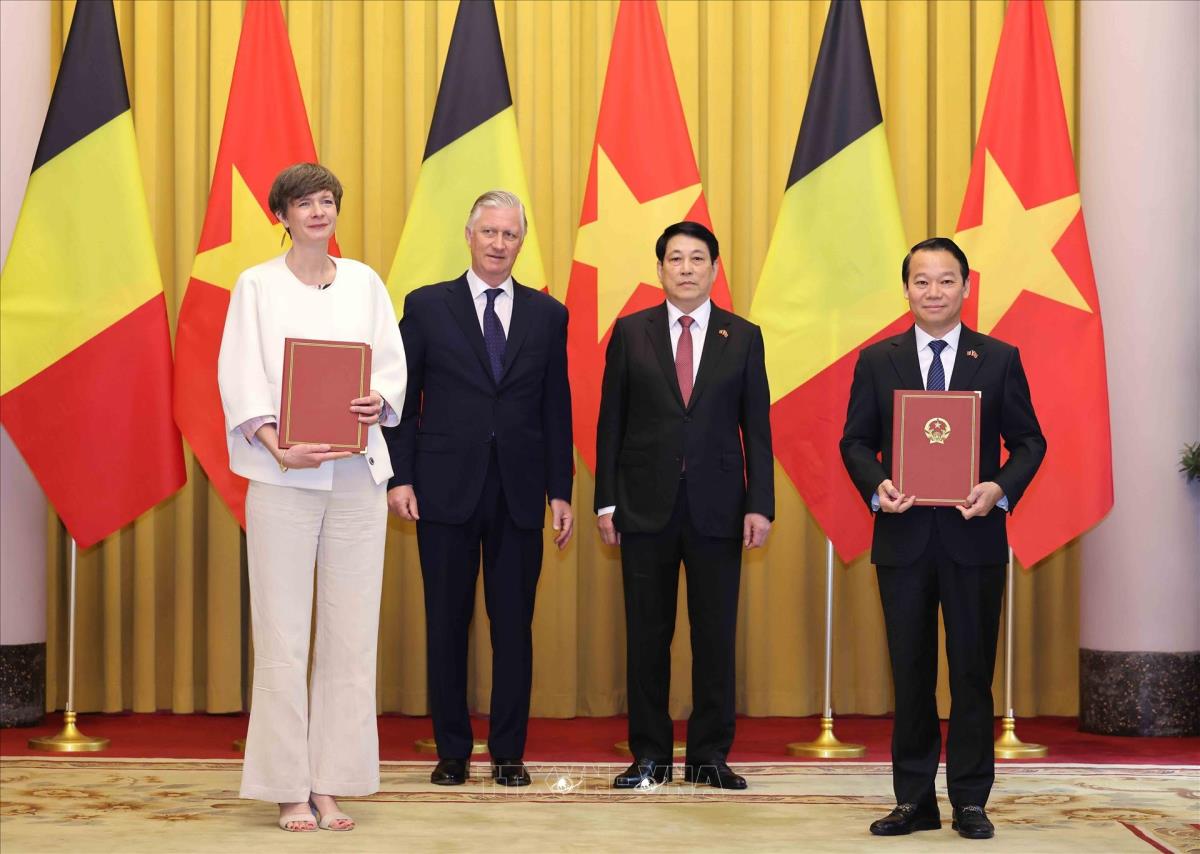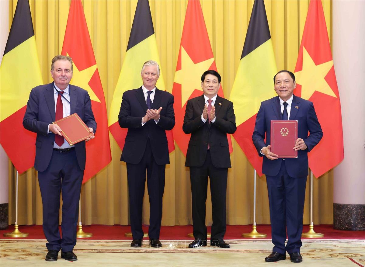 [Photo] Chủ tịch nước Lương Cường và Nhà Vua Bỉ chứng kiến trao văn kiện hợp tác giữa hai nước