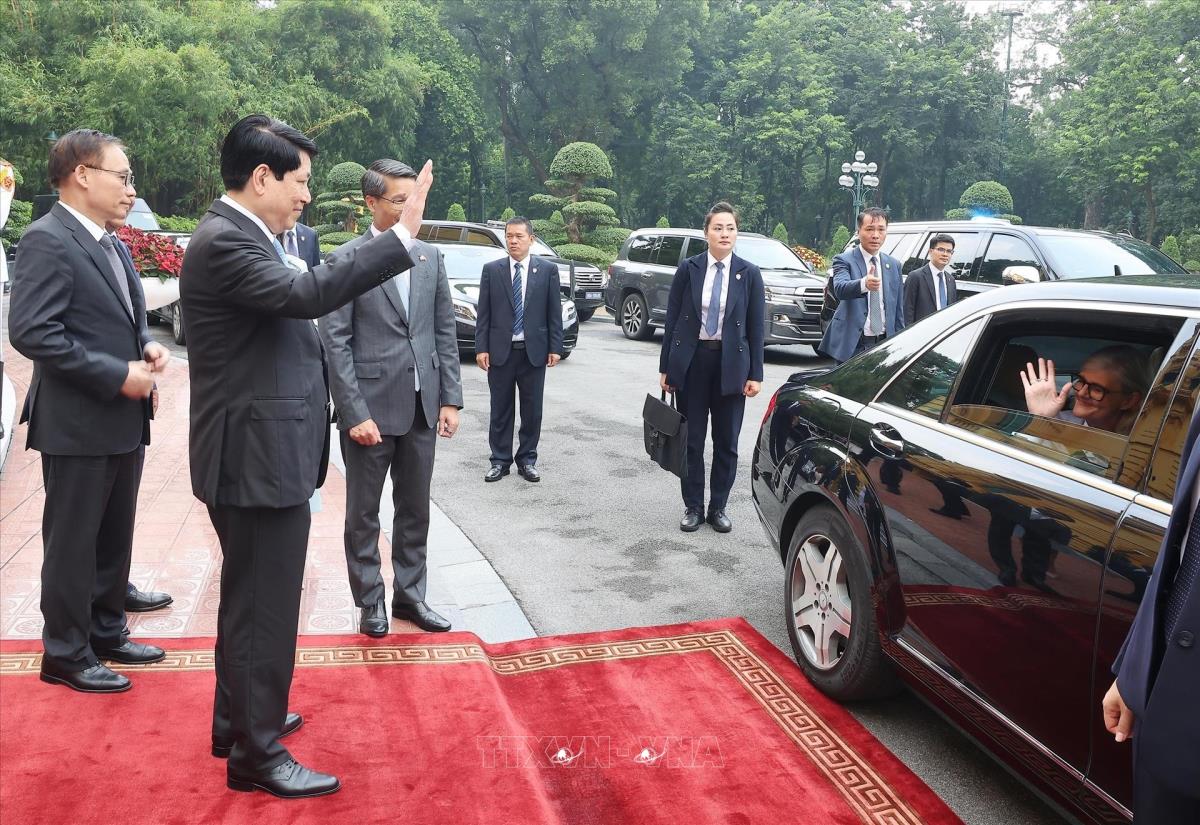 Chủ tịch nước Lương Cường tiễn Toàn quyền Australia Sam Mostyn sau khi kết thúc hội đàm (10/9/2025). Ảnh: Lâm Khánh - TTXVN