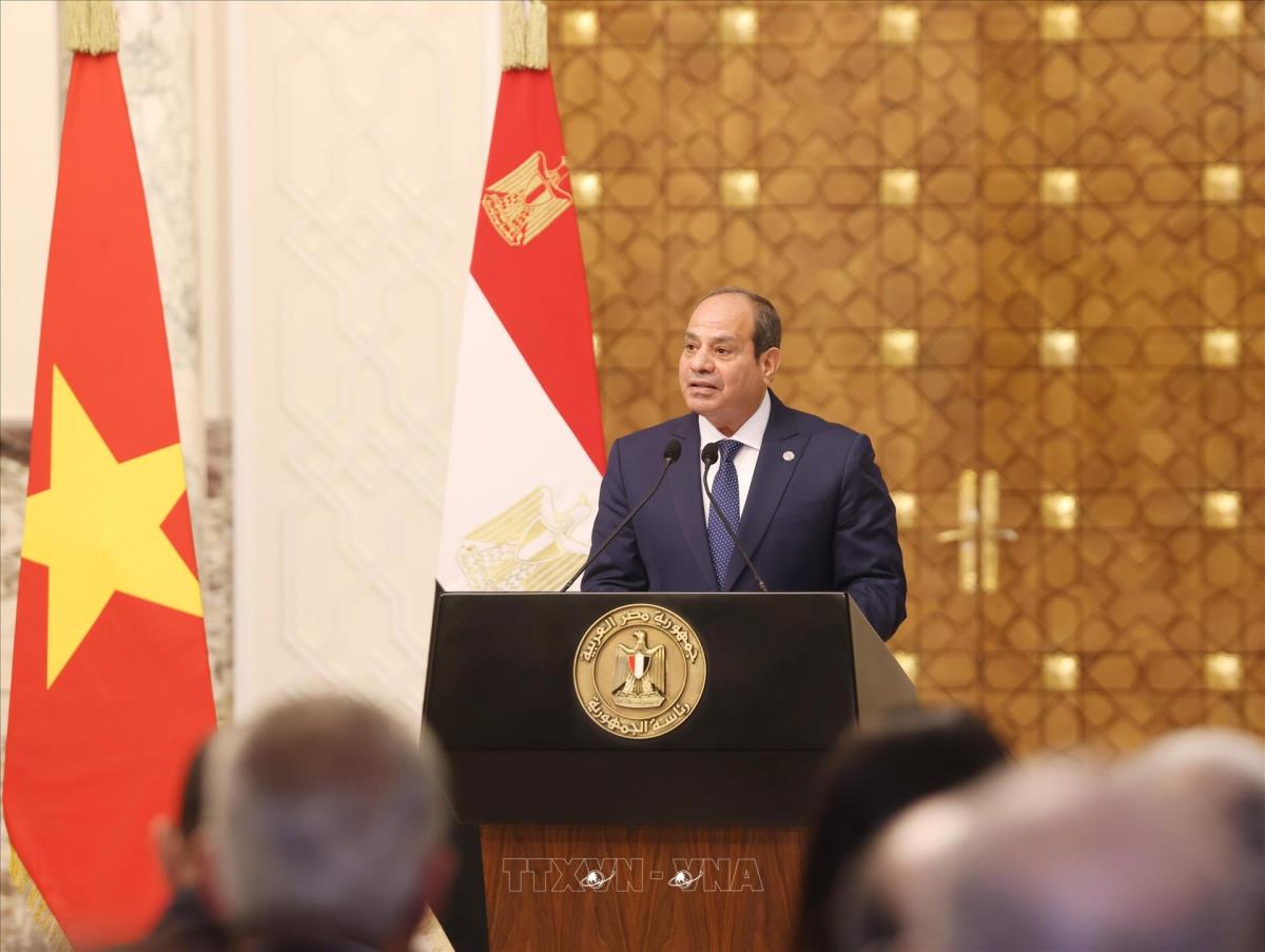 Phát biểu tại cuộc họp báo, thay mặt Nhà nước và nhân dân Ai Cập, Tổng thống Abdel Fattah El-Sisi nhiệt liệt chào mừng Chủ tịch nước và đoàn đại biểu cấp cao Việt Nam sang thăm cấp Nhà nước Cộng hoà Arập Ai Cập; khẳng định chuyến thăm diễn ra trong bối cảnh rất đặc biệt khi hai nước đã trải qua một quá trình lịch sử 60 năm quan hệ hợp tác và ủng hộ lẫn nhau ở tất cả các cấp, qua đó tạo sự gần gũi, kết nối giữa Nhà nước và nhân dân hai nước.