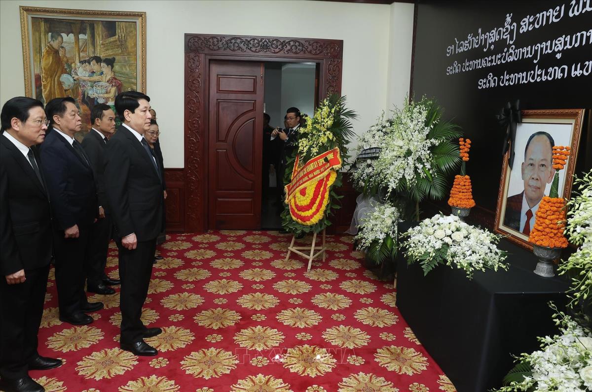 [Photo] Chủ tịch nước Lương Cường viếng đồng chí Khamtay Siphandone