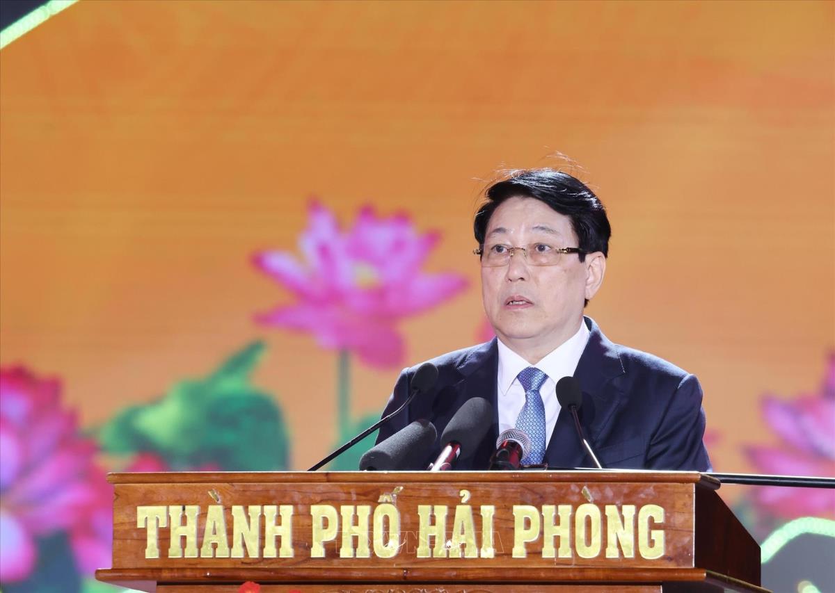 Tại buổi lễ, Chủ tịch nước chỉ rõ, trong lịch sử hàng ngàn năm dựng nước và giữ nước của dân tộc Việt Nam, Hải Phòng luôn giữ vị trí chiến lược trọng yếu. Người dân Hải Phòng với tinh thần kiên cường, dũng cảm, mưu trí, sáng tạo đã có nhiều đóng góp quan trọng khẳng định nền độc lập dân tộc, chủ quyền lãnh thổ, văn minh Đại Việt và ghi dấu ấn sâu đậm trong những chiến công lừng lẫy của dân tộc Việt Nam. Những yếu tố địa lý, hoàn cảnh lịch sử, văn hóa đã hun đúc nên những phẩm chất cao đẹp của người Hải Phòng: Trung dũng, quyết thắng; dám nghĩ, dám làm, thẳng thắn, trung thực; hào phóng, nhiệt thành; nghĩ lớn, làm lớn, làm quyết liệt.