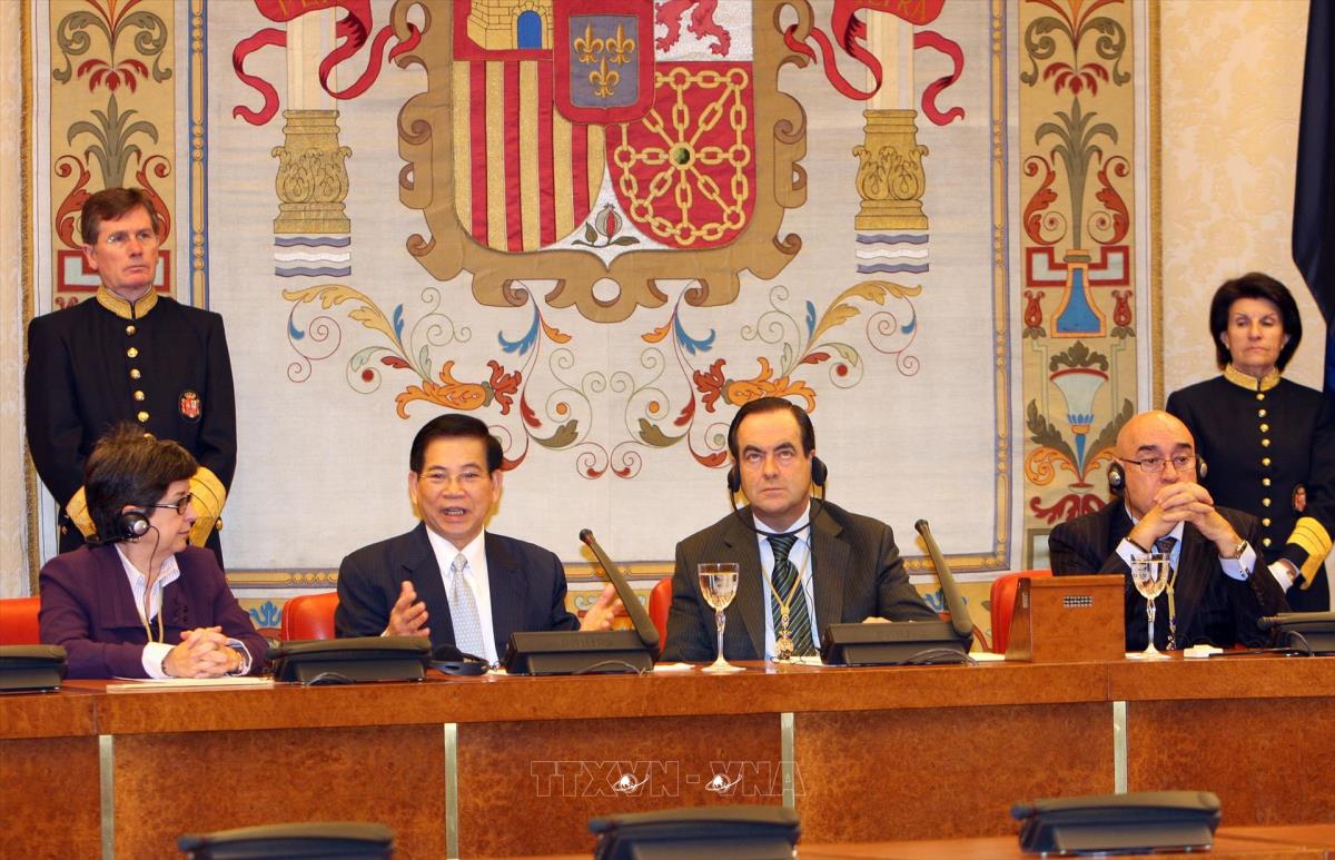 Trong phần phát biểu chào mừng, Chủ tịch Hạ viện Hôxê Bônô (Jose Bono) nhấn mạnh, Việt Nam đang là hình ảnh tiêu biểu về một đất nước phát triển năng động. Tây Ban Nha luôn sẵn sàng hợp tác với Việt Nam, cùng chia sẻ kinh nghiệm trong phát triển kinh tế, xã hội... Chính vì vậy, Tây Ban Nha đã đưa Việt Nam vào nhóm các nước ưu tiên trong hợp tác với khu vực châu Á - Thái Bình Dương.