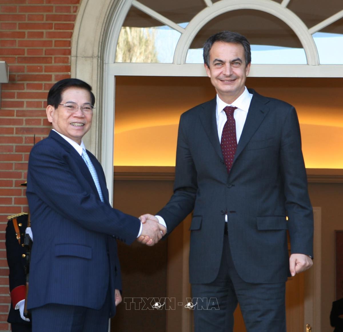Hà Nội (TTXVN 15/12/2009) Theo đặc phái viên TTXVN, tiếp tục các hoạt động trong chuyến thăm cấp Nhà nước Vương quốc Tây Ban Nha, chiều 15/12 theo giờ địa phương (tối cùng ngày theo giờ Hà Nội), tại Phủ Thủ tướng Tây Ban Nha ở thủ đô Mađrít (Madrid), Chủ tịch nước Nguyễn Minh Triết đã hội đàm với Thủ tướng Tây Ban Nha Hôxê Luít Rôđrighết Xapatêrô (Jose Luiz Rodriguez Zapatero).
