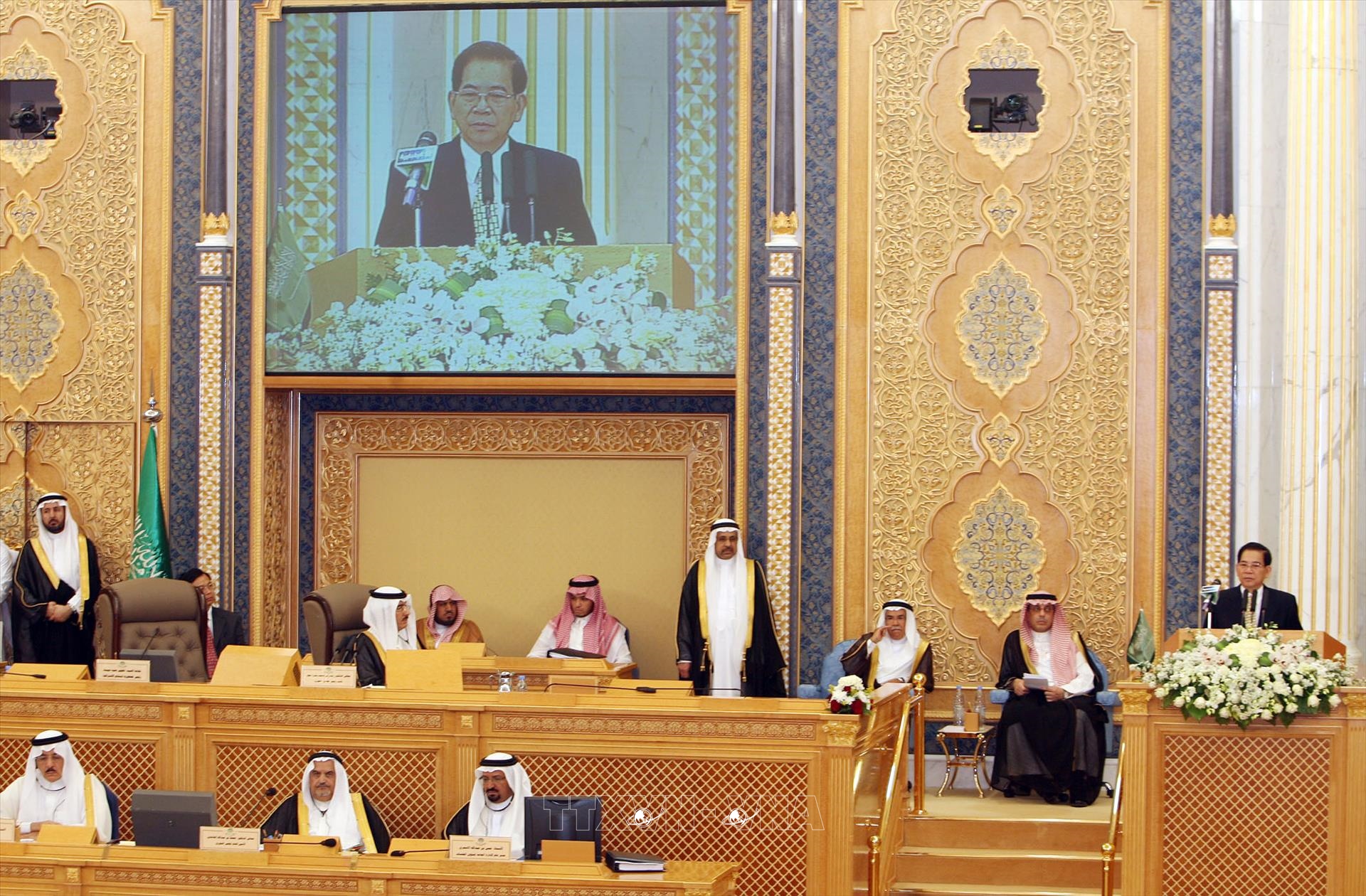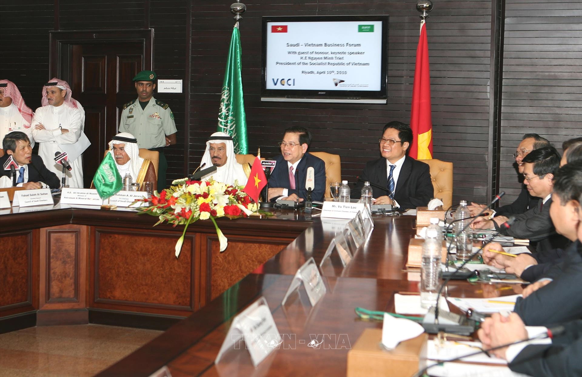 Chủ tịch nước Nguyễn Minh Triết đến dự và phát biểu tại Diễn đàn doanh nghiệp Việt Nam-A-râp Xê-út. Ảnh: Nguyễn Khang - TTXVN
