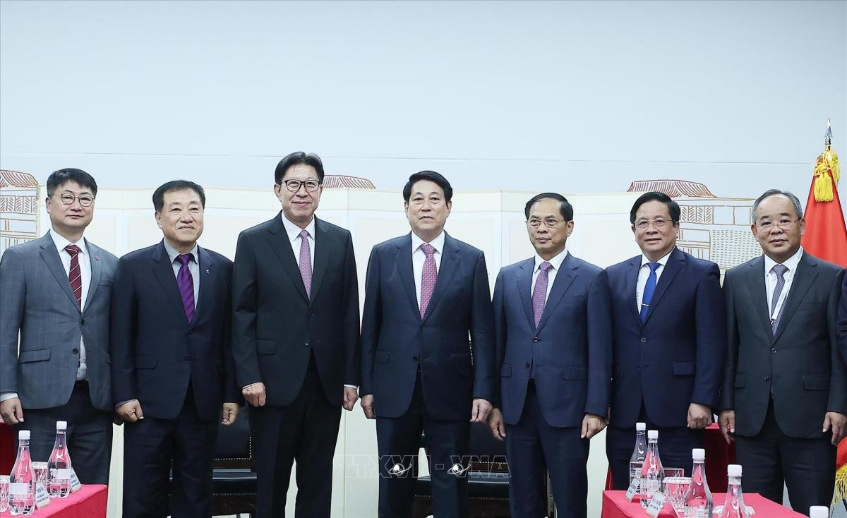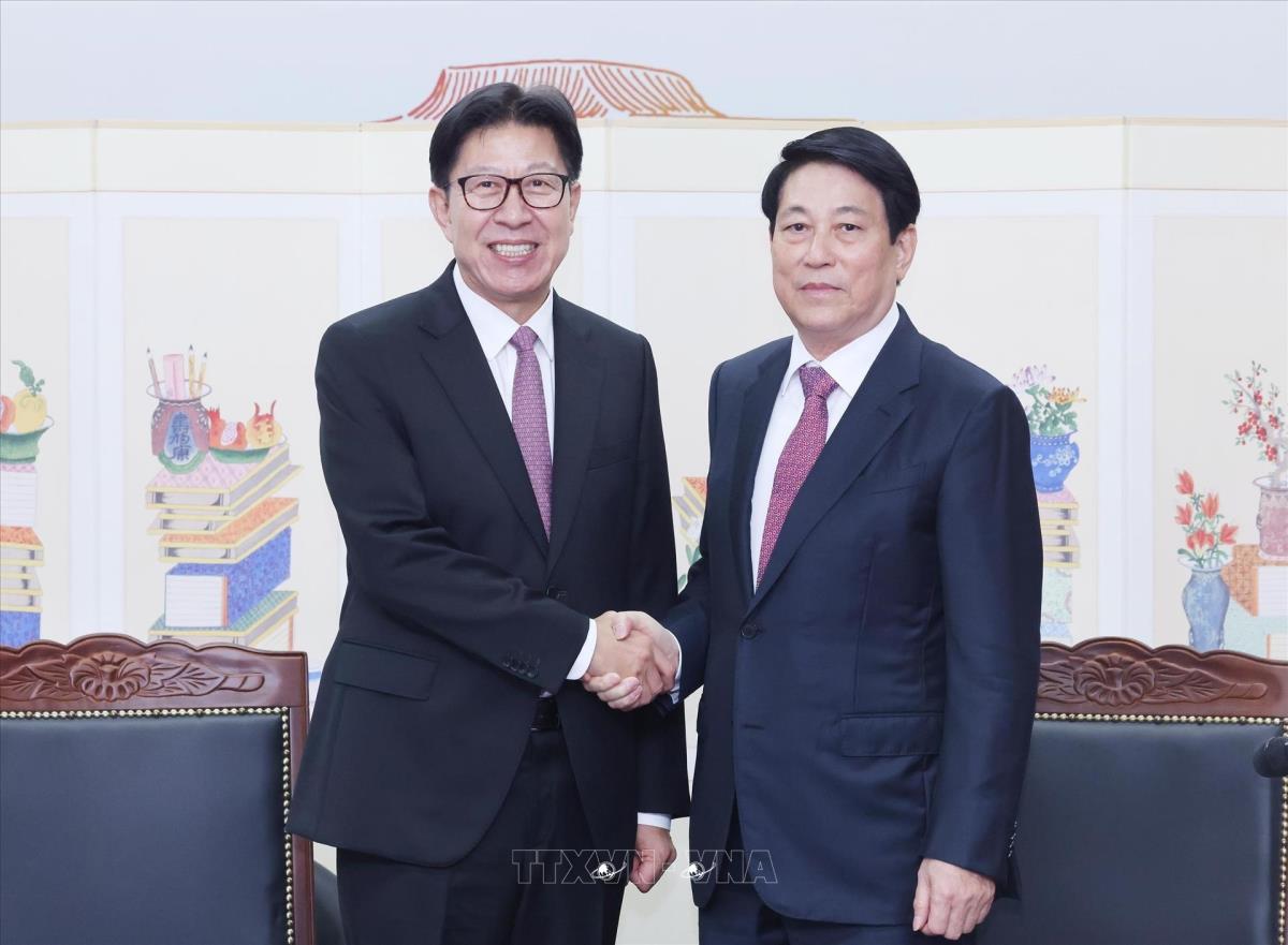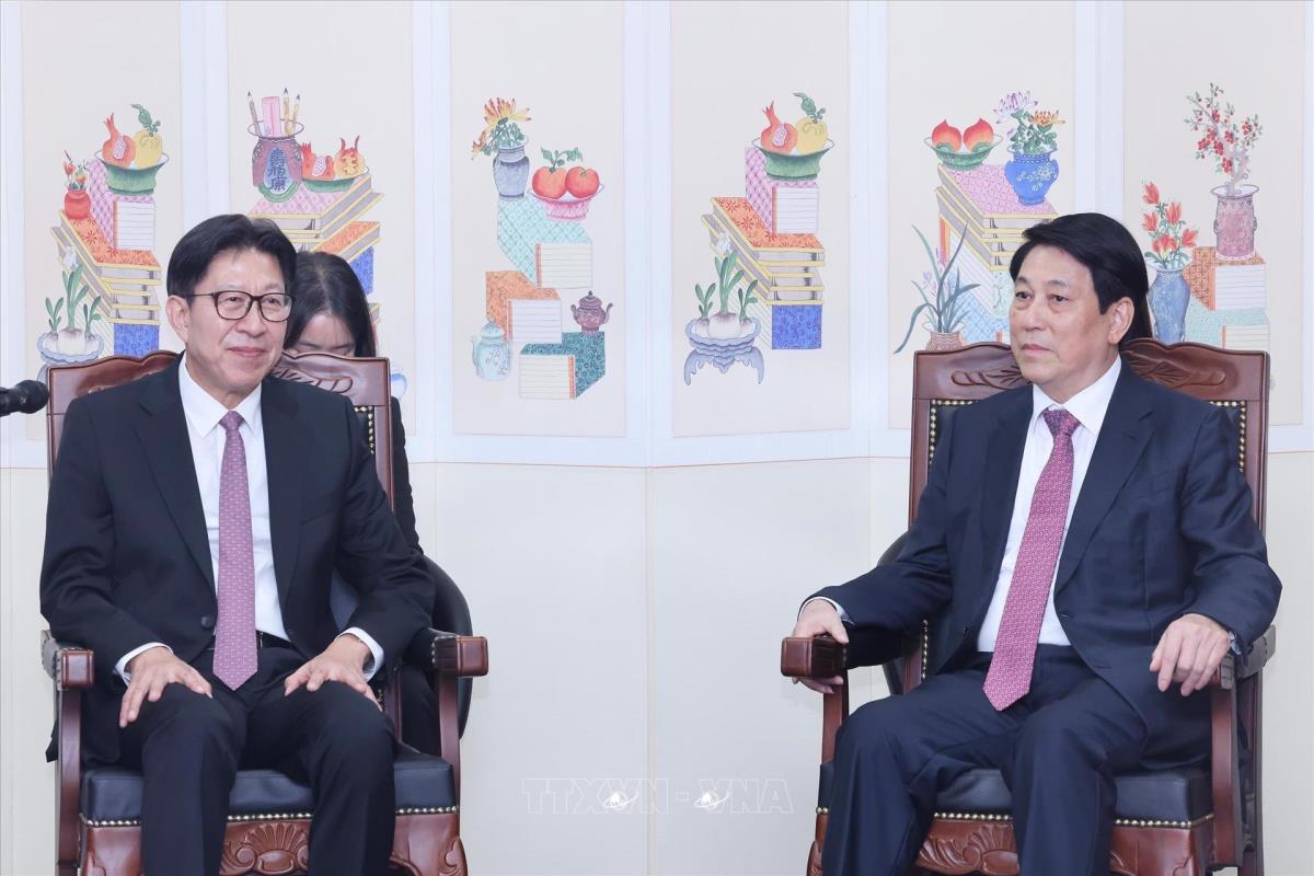 Hà Nội (TTXVN 1/11/2025) Nhân dịp tham dự Tuần lễ Cấp cao Diễn đàn Hợp tác kinh tế châu Á-Thái Bình Dương (APEC) lần thứ 32 và làm việc song phương tại Hàn Quốc, chiều 1/11/2025, tại thành phố Busan, Chủ tịch nước Lương Cường tiếp Thị trưởng thành phố Busan Park Heong-joon.