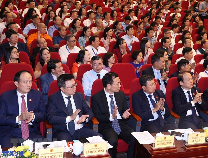 Các đại biểu tham dự Lễ trao Giải báo chí toàn quốc về Quốc hội và Hội đồng nhân dân (Giải Diên Hồng) lần thứ nhất - năm 2023. (Ảnh: Thống Nhất/TTXVN)