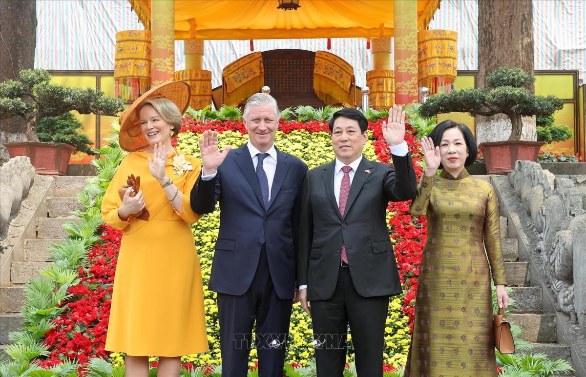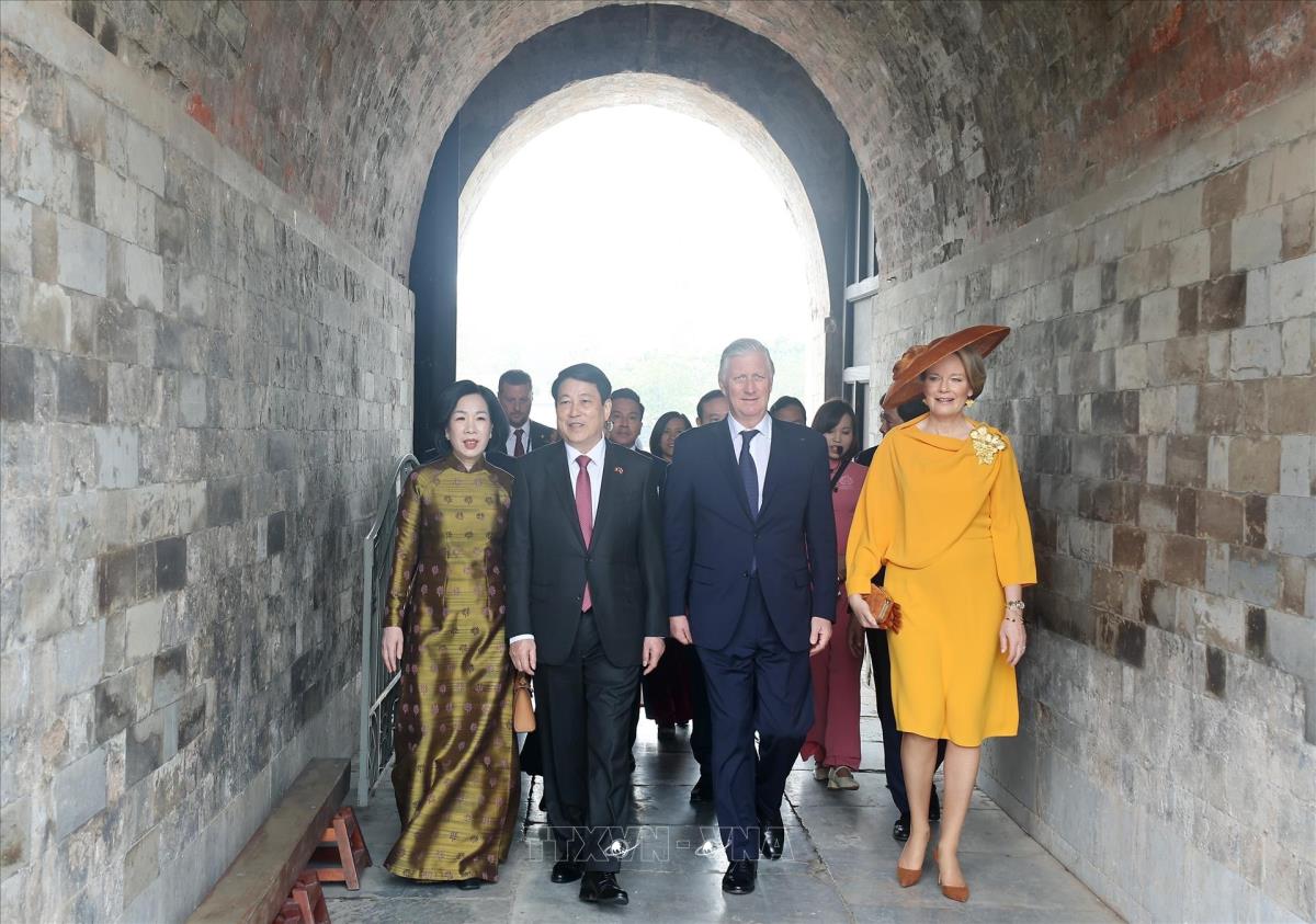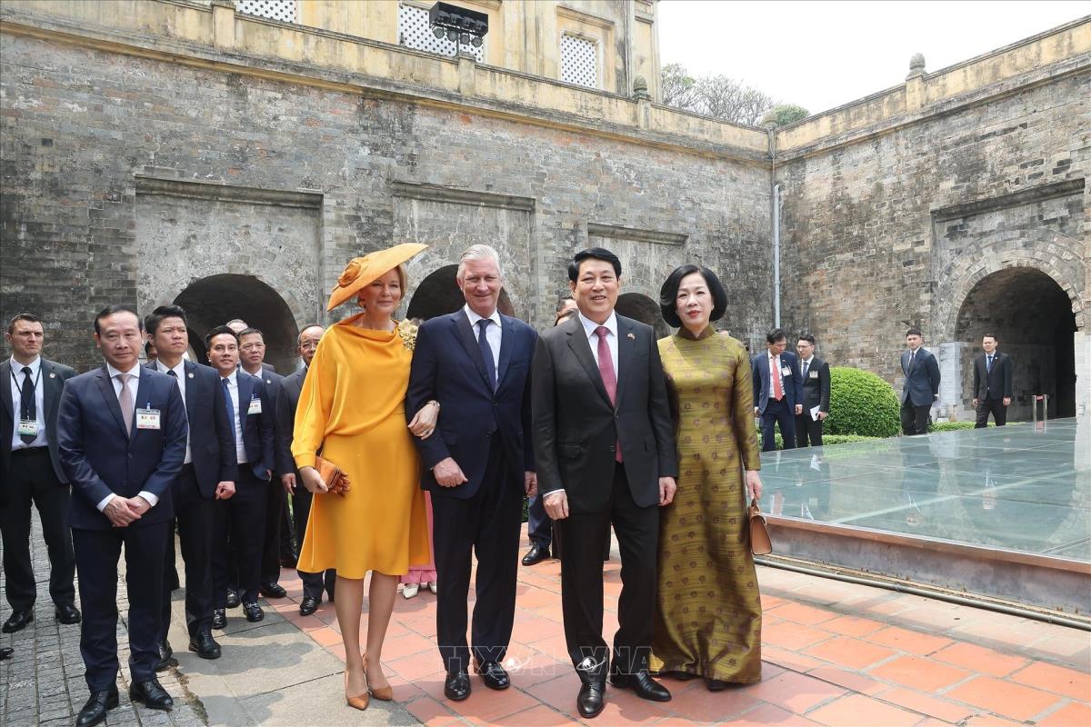 Chủ tịch nước Lương Cường và Phu nhân cùng Nhà Vua Vương quốc Bỉ Philippe và Hoàng hậu Mathilde thăm Hoàng thành Thăng Long – Hà Nội (1/4/2025). Ảnh: Lâm Khánh – TTXVN