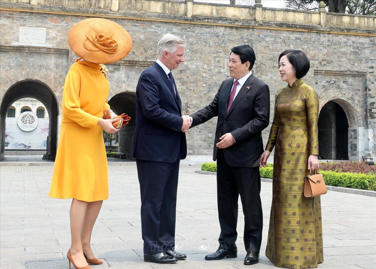 Hà Nội (TTXVN 1/4/2025) Sáng 1/4/2025, Chủ tịch nước Lương Cường và Phu nhân cùng Nhà Vua Vương quốc Bỉ Philippe và Hoàng hậu Mathilde tham quan Khu di tích Hoàng thành Thăng Long - Hà Nội.