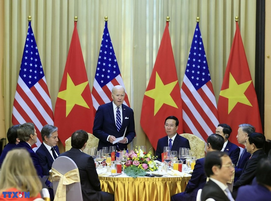Chiều 11/9/2023, tại Phủ Chủ tịch, Chủ tịch nước Võ Văn Thưởng chủ trì Tiệc chiêu đãi Tổng thống Hợp chúng quốc Hoa Kỳ Joe Biden nhân chuyến thăm cấp Nhà nước tới Việt Nam.